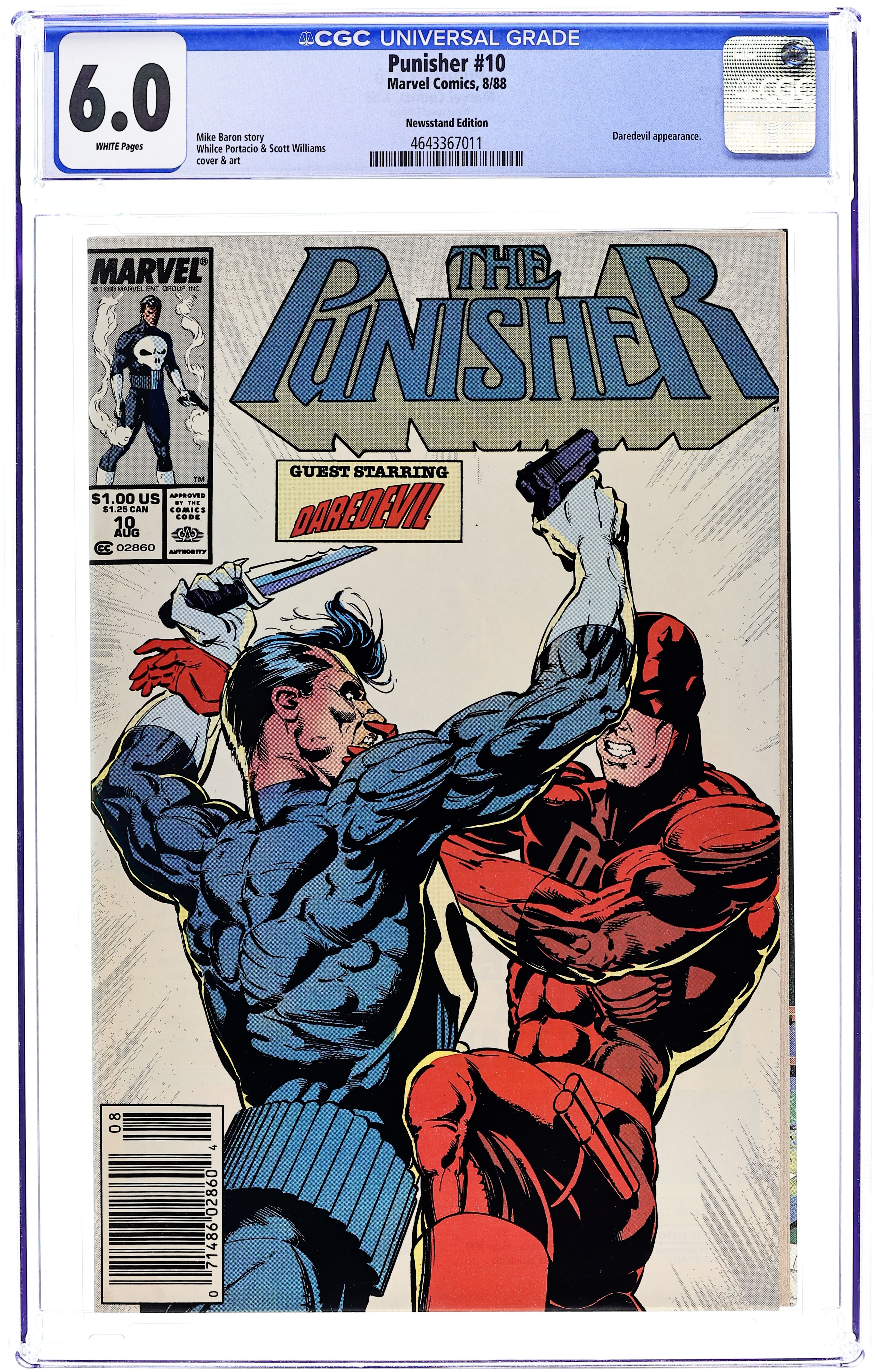 Newsstand Edition. Crossover with Daredevil (1964-1998 1st Series) #257. Story by Mike Baron. Art by Whilce Portacio. Daredevil and the Punisher are like fire and ice. They just don't play well together. A known criminal is on the loose and Daredevil wants him to stand trial for his crimes but Frank intends to see that he never makes it to court. Sit back and enjoy a Daredevil/Punisher brawl the likes of which you've never seen before. It's a story told from two points of view. This is the Punisher's point of view. Read Daredevil #257 for 'ole Hornhead's. 32 pages. Cover price $1.00.