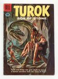Published Mar 1961 by Dell/Gold Key.$15.00Painted cover. Turok in "The Cave of Fear" in which Turok and Andar try to rescue a girl who is doomed to be sacrificed and "The Burial Grounds" in which Turok and Andar try to find the dinosaurs' secret graveyard. Issue also has backup feature "Young Earth - The Death of the Dinosaurs," a one-page text feature "The Youngling," and one-page strips. No art/story credits given. 36 pages, full color. Cover price $0.15.