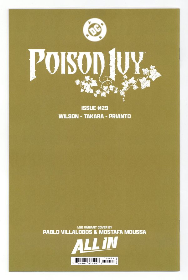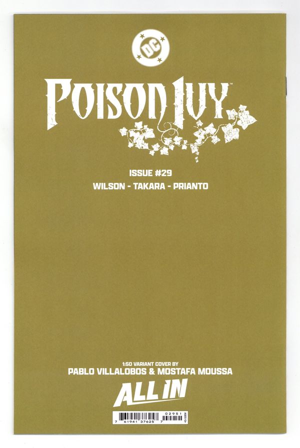 $32.00Limited 1 for 50 Retailer Incentive Variant Cover. Written by G. Willow Wilson. Art by Marcio Takara. Cover by Pablo Villalobos. Poison Ivy ventures into the wilds of Washington to uncover the true identity of the Order of the Green Knight's mysterious leader! But when Pamela hears what they have to say, will she decide to stop fighting and embrace their mission...or will she burn the operation down once and for all? 32 pages, full color. Rated T+ Cover price $4.99.
