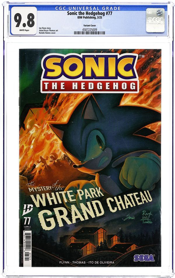 Written by Ian Flynn. Art by Adam Bryce Thomas. Cover by Natalie Haines. Scattered Pieces Part Two! Sonic and the Chaotix Detective Agency are on the move. After the epic events of issue 75, Clutch the Opossum is still at large. Its up to our heroes to discover what has become of the dapper-dressed villain! Can Sonic and the Chaotix uncover the truth before his next big move? 28 pages, full color. Cover price $3.99.