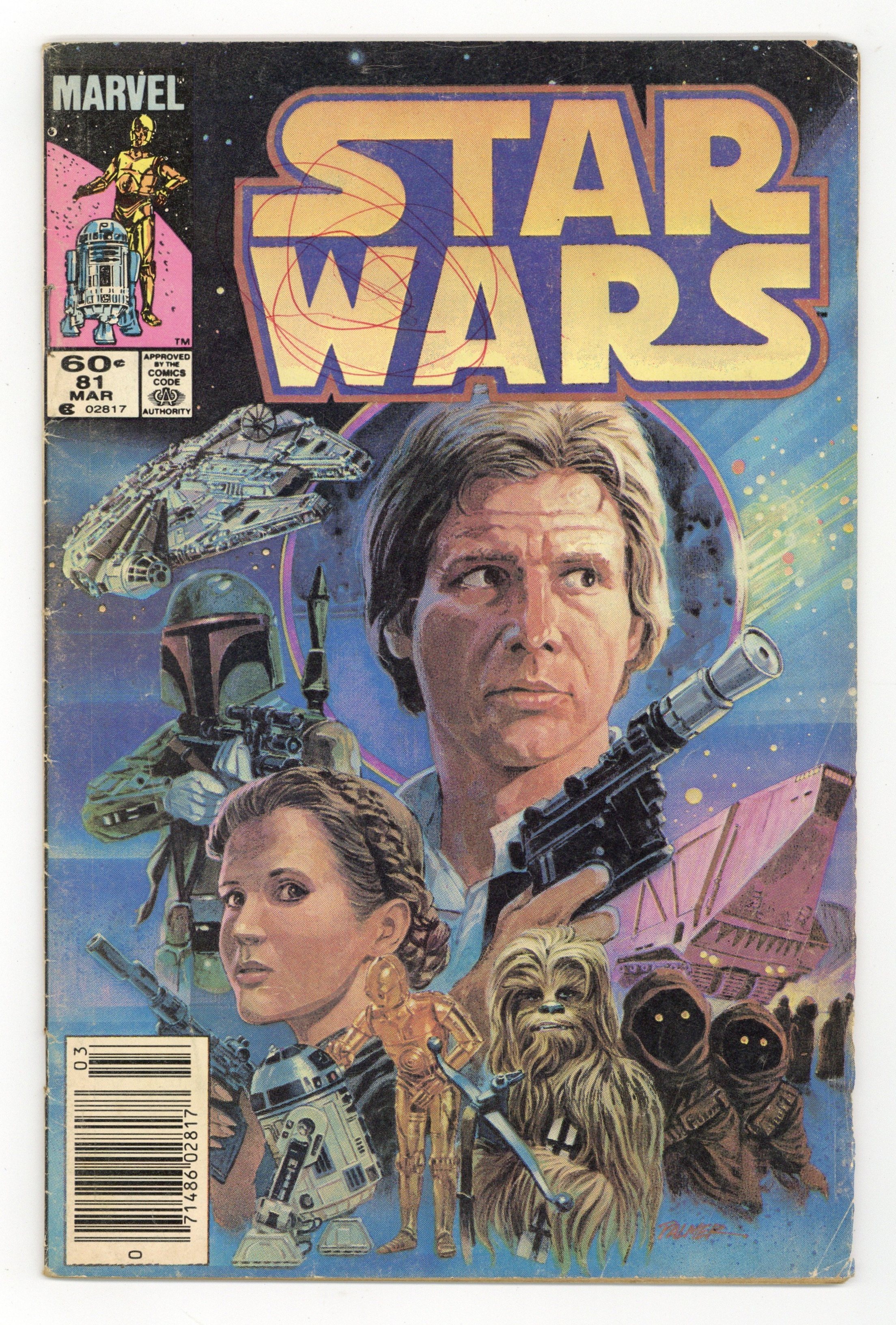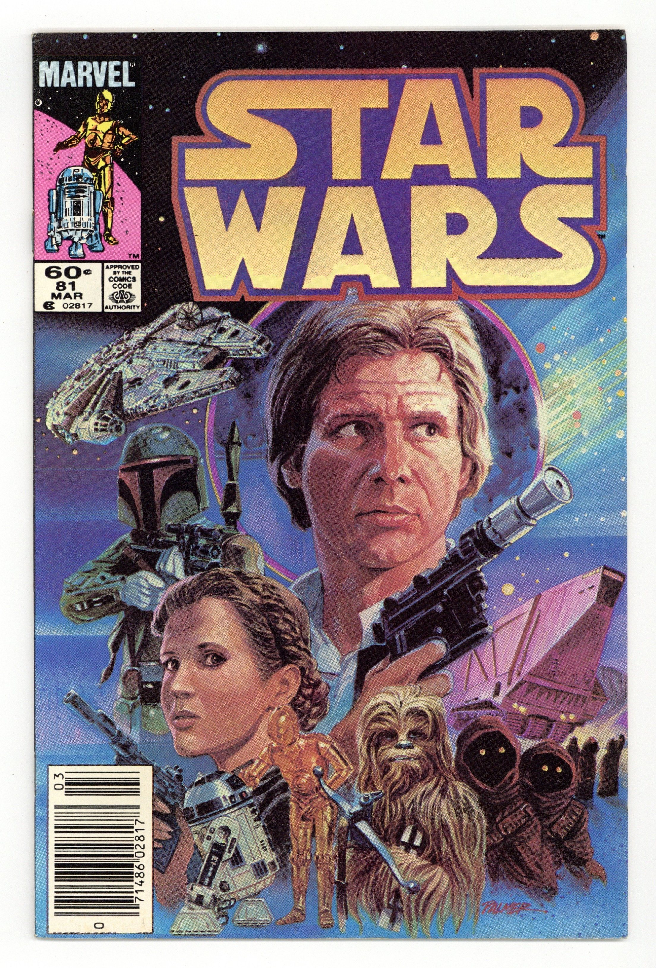Tags: Star Wars$24.00Newsstand Edition. Script by Jo Duffy, breakdowns by Ron Frenz, finishes by Tom Palmer and Tom Mandrake. Cover by Tom Palmer. Han's search for cash brings him, Leia and Artoo to Tatooine, where they encounter an out-from-the-Sarlaac Boba Fett in "Jawas Of Doom". Cover price $0.60.