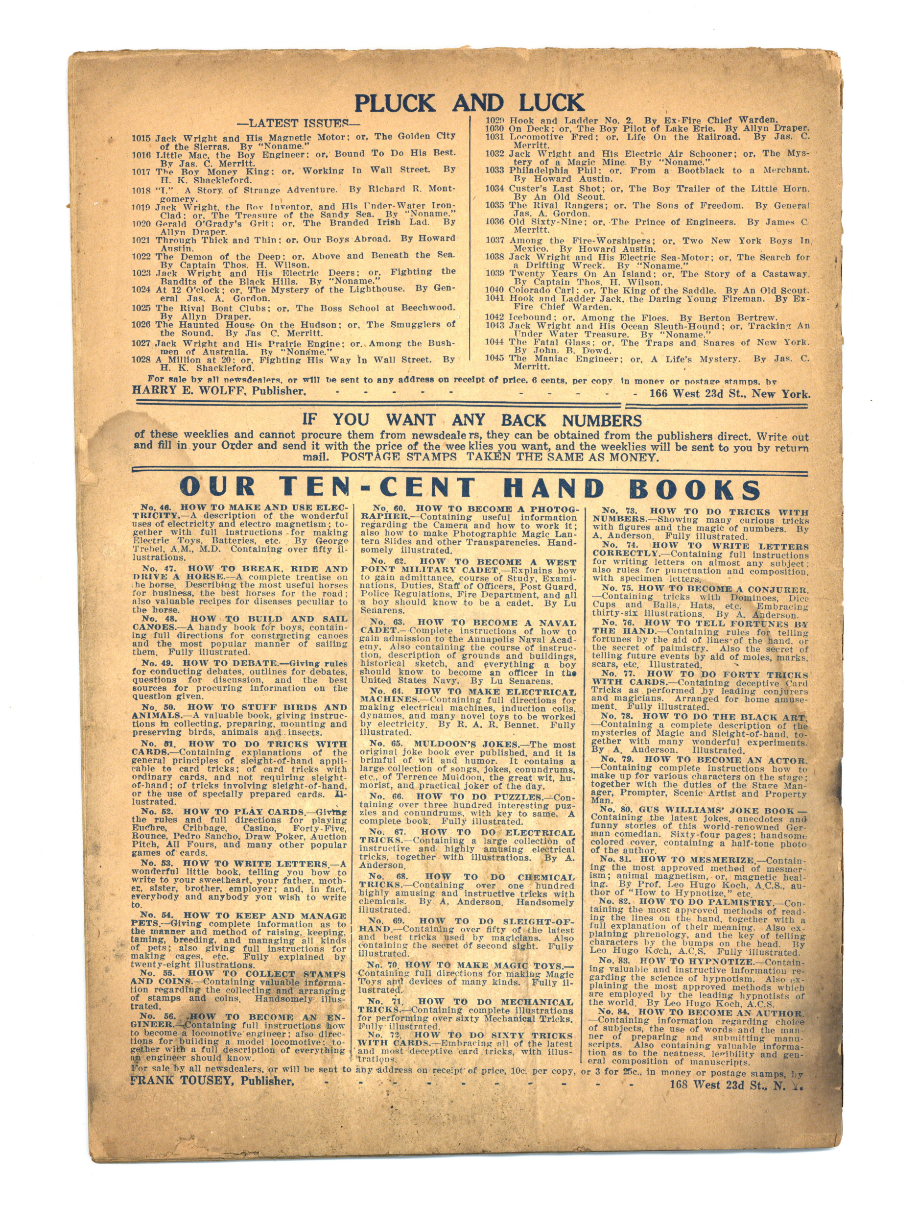 Published May 1918 by Harry E. Wolff.$24.00- Spine split 60%. Water damage: Extensive. Staple rust: Extensive.