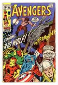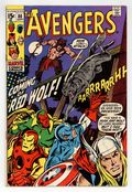 Tags: Marvel Legacy Numbering: Avengers (part 80), Avengers$21.00"The Coming of Red Wolf!" Part 1 of 3. First appearance of Red Wolf. Script by Roy Thomas. Pencils by John Buscema. Inks by Tom Palmer. Cover by John Buscema and Tom Palmer. During an evening walk through Manhattan, the Vision encounters a man and a wolf! But this isn't just any human and canine duo, it's the newest Marvel superhero Red Wolf, and his faithful partner Lobo! After a brief skirmish, the synthezoid avenger takes Red Wolf to Avengers Mansion to learn why the native American warrior has traveled so far from home. And regrettably the reason is a name Earth's Mightiest Heroes know very well: Cornelius Van Lunt! The ruthless businessman is using extortion to take land from Red Wolf's tribe! So the Avengers will be departing for big sky country very soon, right? Not so fast! Because the golden avenger has identified an urgent threat in the city: the resurgent Zodiac! Will the Avengers divide and conquer both menaces? Origin of Red Wolf. Avengers Lineup: Black Panther, Captain America, Goliath, Iron Man, Quicksilver, Scarlet Witch, Thor, and the Vision. (Note: The letters page includes a full-page reply by Roy Thomas to a controversial fan letter (printed in Avengers 79) about the story in Avengers 73 & 74.) 36 pages. Cover price $0.15.