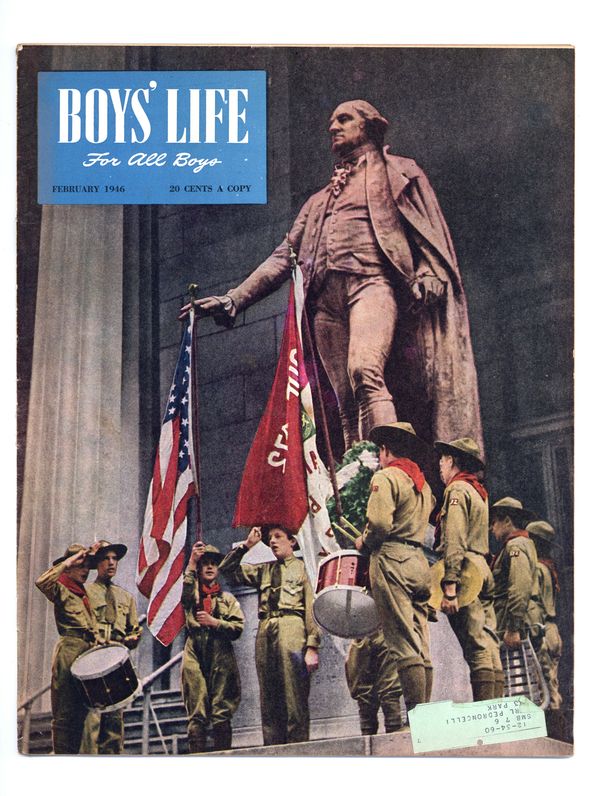Published Feb 1946 by Boy Scouts of America.$23.00Classic magazine for boys featuring articles, fiction, activities, and a few pages of comics. 10.5" x 13.5", 34 pages, B&W Cover price $0.20.
