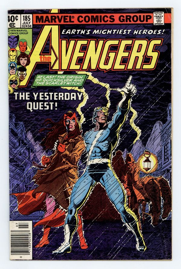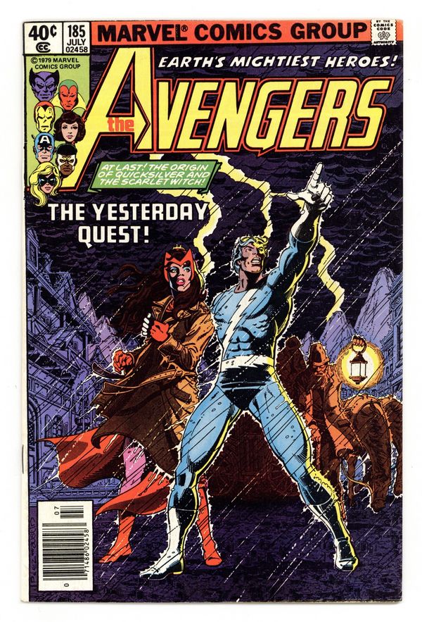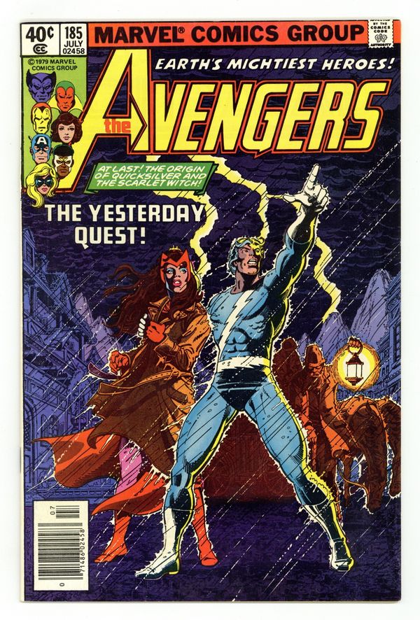 Tags: Avengers$14.50Newsstand Edition. "The Yesterday Quest!" Part 1 of 3. Plot by Mark Gruenwald and Steven Grant. Script by David Michelinie. Pencils by John Byrne. Inks by Dan Green. Cover by George Perez and Terry Austin. Ever since their first appearance in Uncanny X-Men 4 many years ago, the origin of Quicksilver and the Scarlet Witch has been a mystery to both comic readers and the siblings alike. After Wanda and Pietro arrive in Transia with Django Maximoff, clues to the twins' birthplace and birth parents begin to emerge. Modred the Mystic, the Darkhold, Bova the cow-woman, the High Evolutionary's former citadel, and Wundagore Mountain are all pieces to the puzzle. And the truth seems to lie at the top of the mountain. But there's something else at the top of Wundagore Mountain. Something ancient, something evil. Cameo appearance by Bova. Flashback cameos by Robert Frank, Madeline Frank, and the Toad. Avengers Lineup: Beast, Captain America, Falcon, Hawkeye, Iron Man, Jocasta, Ms. Marvel, Quicksilver, Scarlet Witch, Vision, and the Wasp. (Notes: Mark Gruenwald's participation in this three-part story was an indication of the storyline's importance to the continuity of the Marvel Universe. Modred previously appeared in Marvel Two-in-One 33. This issue includes a full-page ad for the Man-Thing's guest appearance in Micronauts 7.) 36 pages Cover price $0.40.