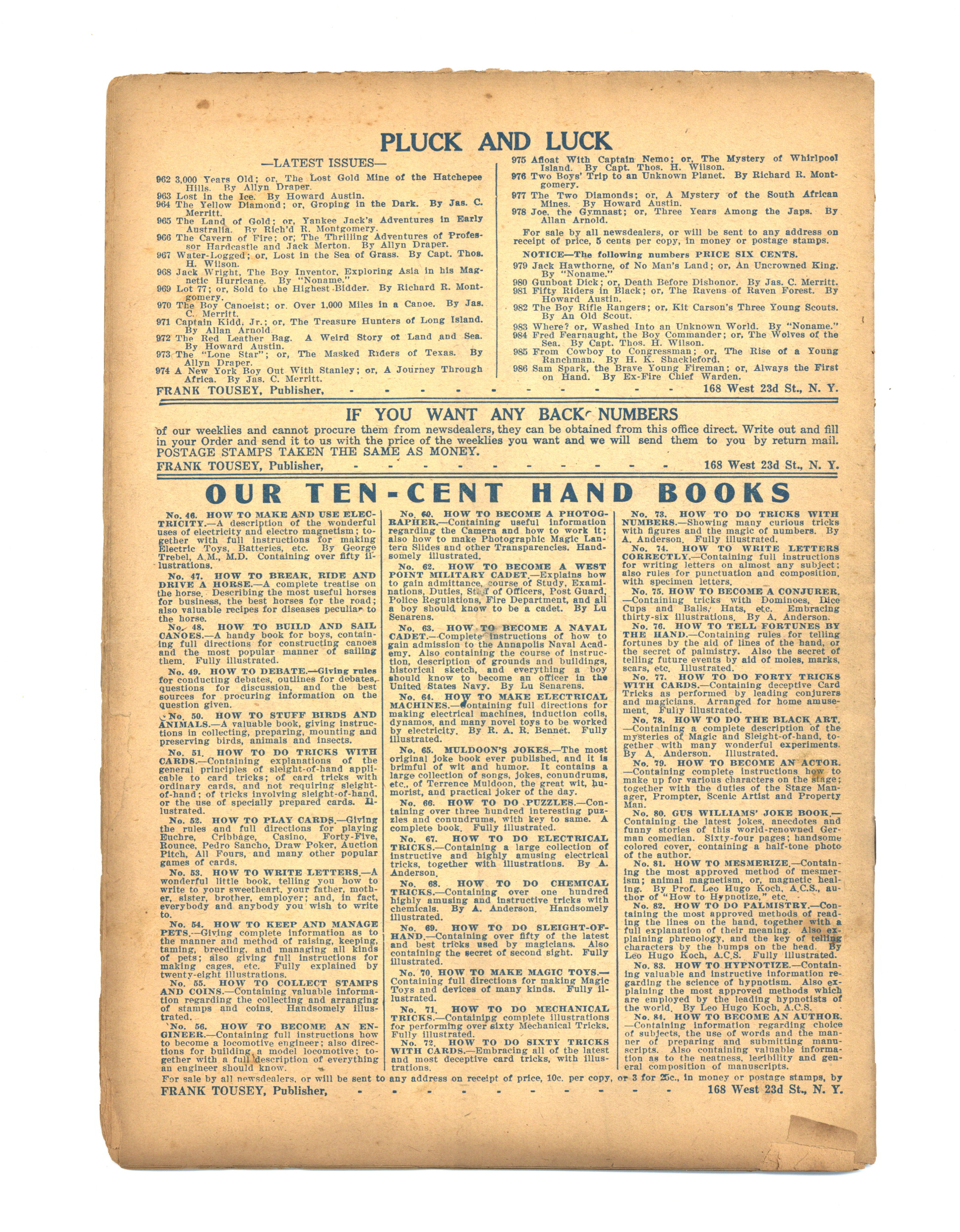 Published May 1917 by Harry E. Wolff.$50.00- Spine split 90%. Cover Detached. Staple rust: Slight.