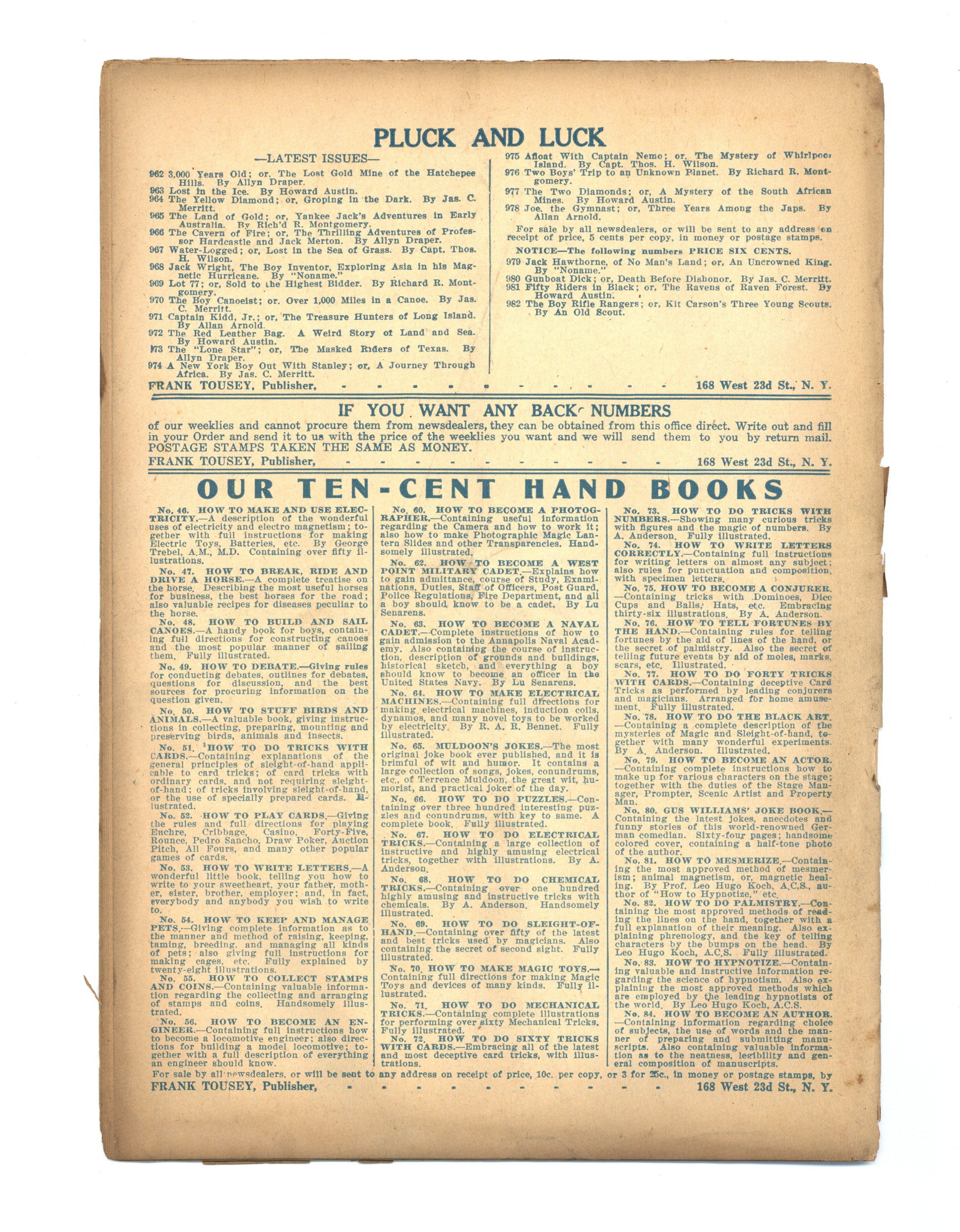 Published Mar 1917 by Harry E. Wolff.$52.00- Spine split 90%. Cover Detached. Water damage: Slight.