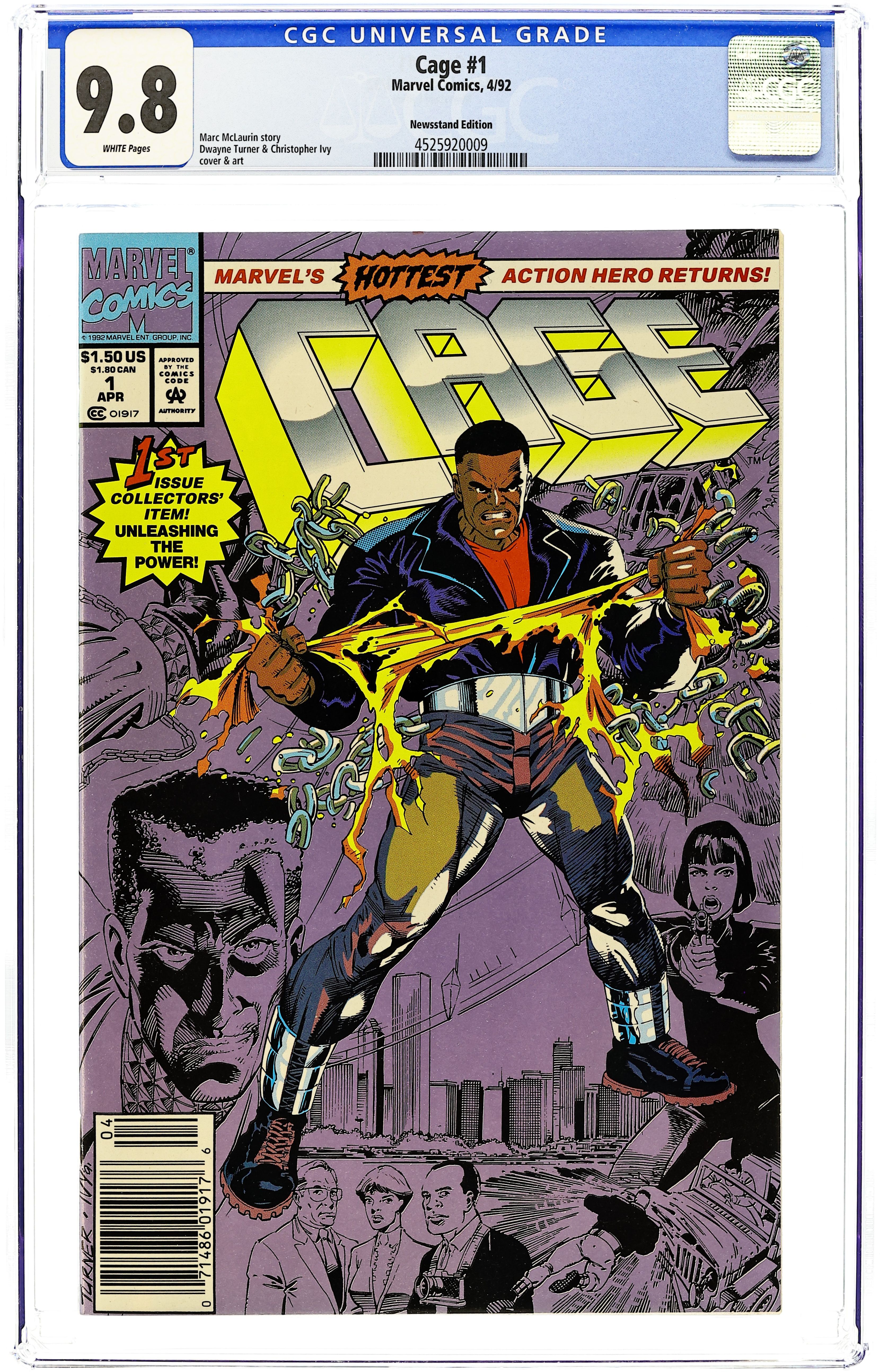 Newsstand Edition. Cover pencils by Dwayne Turner, inks by Chris Ivy. The Drowning Man, script by Marc McLaurin, pencils by Dwayne Turner, inks by Chris Ivy; Luke Cage is hired by a Chicago newspaper as their resident superhero with Cage getting to take down bad guys for money and the newspaper getting the story; When Cage goes after a mobster, he ends up fighting Hardcore, a villain with an agenda that includes Cage. 36 pgs. $1.50. Cover price $1.50.