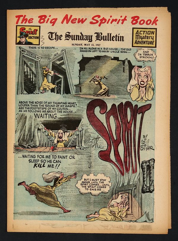 May 11, 1947. Spirit Weekly Newspaper section. Scripts, pencils/inks by Eisner except where noted. Tabloid Sized Newsprint, 10-3/4" x 15", 8 pages, full color.