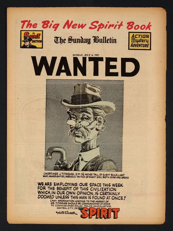 July 6, 1947. Spirit Weekly Newspaper section. Scripts, pencils/inks by Eisner except where noted. Tabloid Sized Newsprint, 10-3/4" x 15", 8 pages, full color.