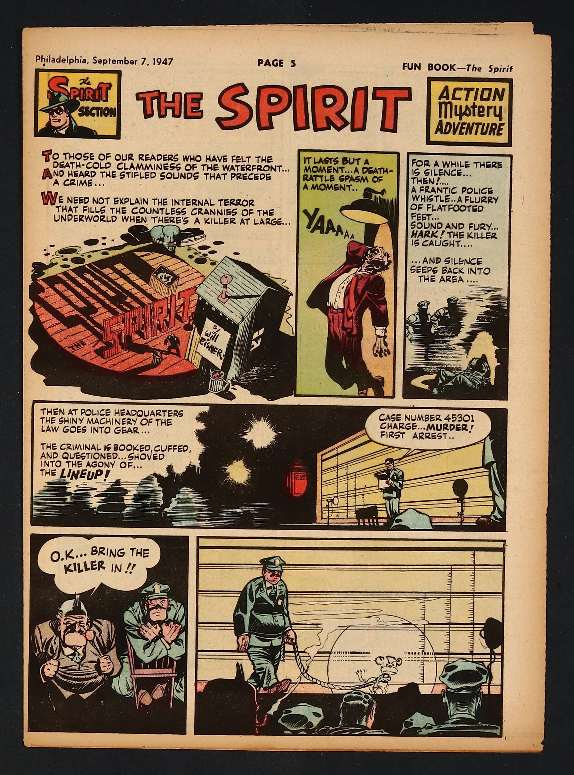 September 7, 1947. Spirit Weekly Newspaper section. Scripts, pencils/inks by Eisner except where noted. Tabloid Sized Newsprint, 10-3/4" x 15", 8 pages, full color.