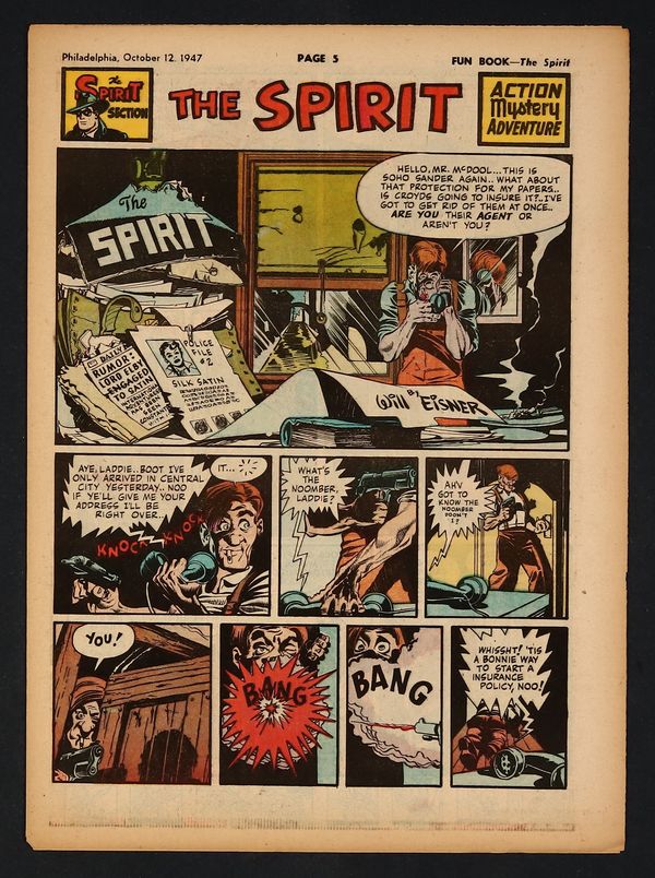 October 12, 1947. Spirit Weekly Newspaper section. Scripts, pencils/inks by Eisner except where noted. Tabloid Sized Newsprint, 10-3/4" x 15", 8 pages, full color.