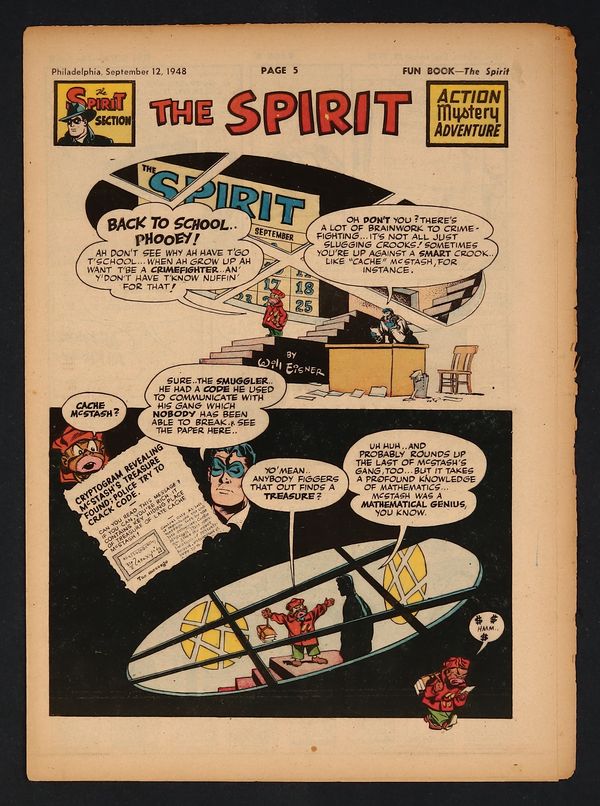 September 12, 1948. Spirit Weekly Newspaper section. Scripts, pencils/inks by Eisner except where noted. Tabloid Sized Newsprint, 10-3/4" x 15", 8 pages, full color.