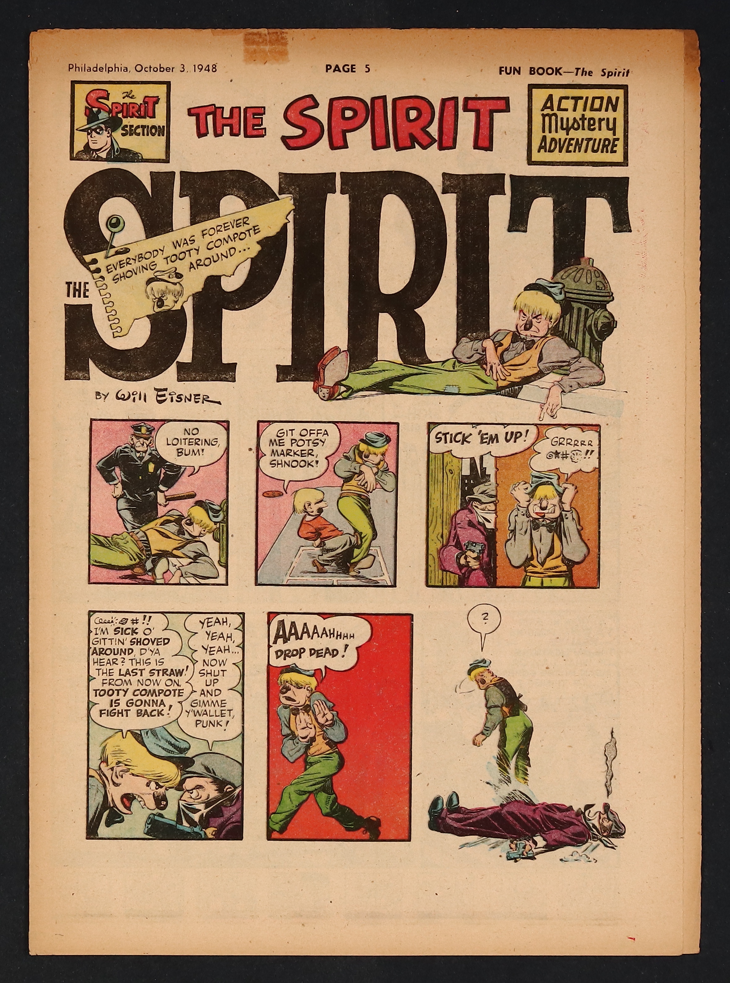October 3, 1948. Spirit Weekly Newspaper section. Scripts, pencils/inks by Eisner except where noted. Tabloid Sized Newsprint, 10-3/4" x 15", 8 pages, full color.