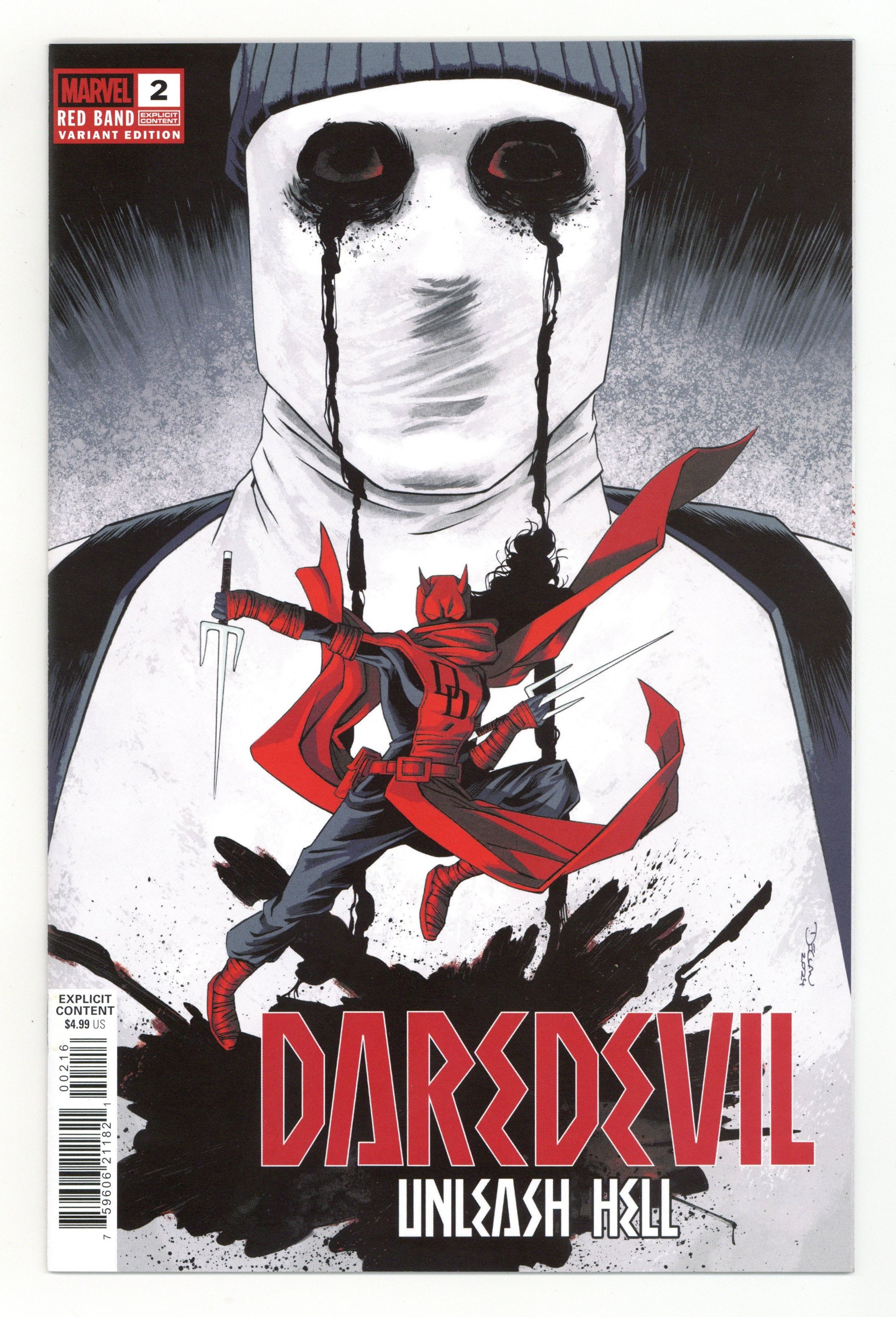 $20.00Limited 1 for 25 Retailer Incentive Variant Cover. Written by Erica Schultz. Art by Valentina Pinti; José Luis Soares. Cover by Declan Shalvey. Something bloody is at work in Hell's Kitchen! Watchful as ever as DAREDEVIL, but at odds with her crimefighting partner, Matt Murdock, Elektra Natchios is alone on the trail of a serial killer whose work has a hauntingly familiar style! As grisly and grim tableaus begin appearing throughout the city, the lines between life and death or reality and illusion are about to blur! 32 pages, full color. Rated Explicit Content Cover price $4.99.