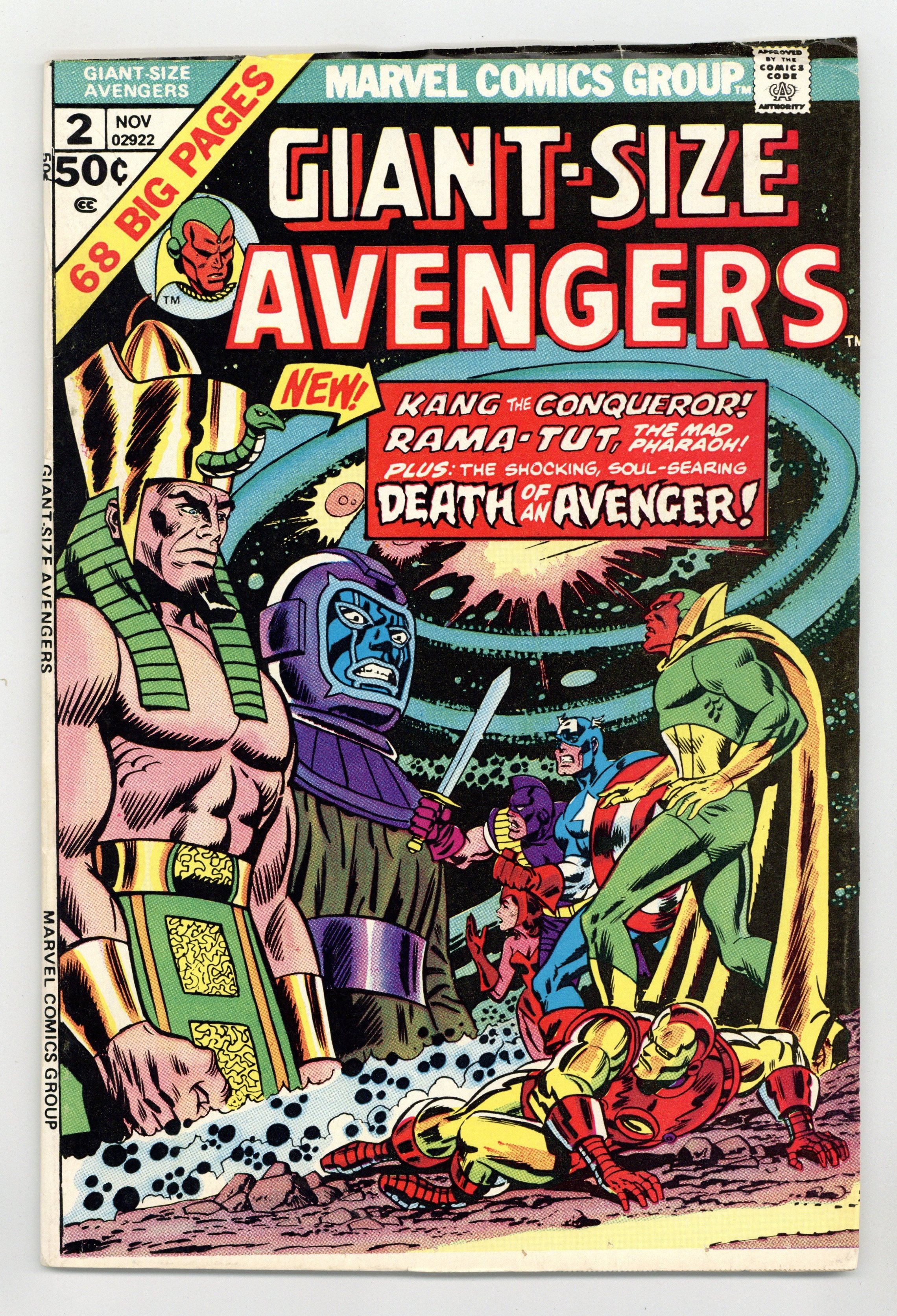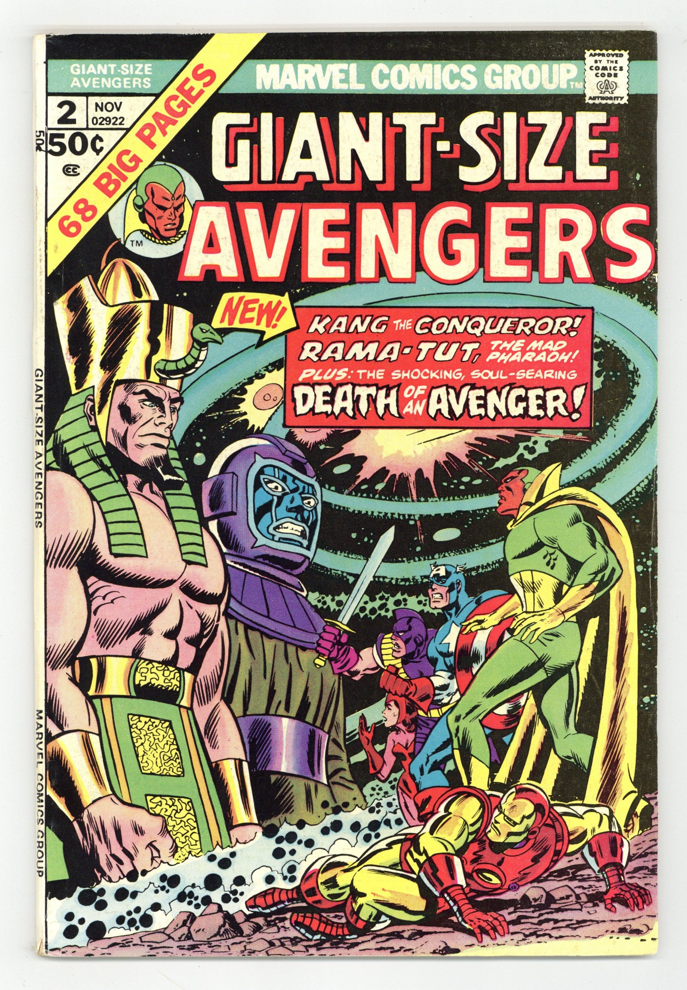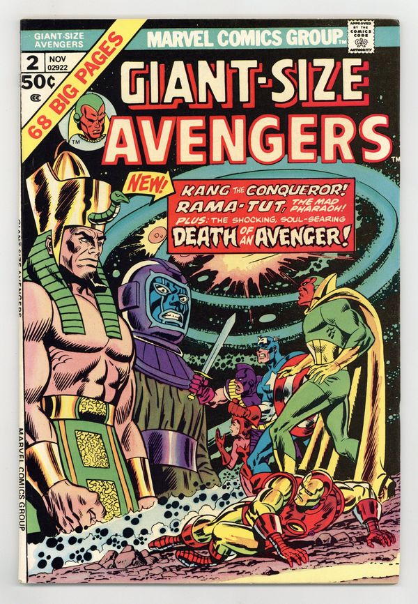 Tags: Celestial Madonna (part 2), Avengers$29.00"A Blast from the Past!" Story by Steve Englehart. Art by Dave Cockrum. Cover by Ron Wilson. The story continues from Avengers 129 and the Earth's mightiest heroes are in dire straits! Kang the Conqueror has paralyzed Iron Man, Thor, and the Vision and placed each one inside a Macrobot. Now the three Macrobots are sent to China, the Soviet Union, and the United States to wreck havoc! Kang has also imprisoned Mantis, the Scarlet Witch, and Agatha Harkness in an abandoned Egyptian pyramid as he tries to determine who is the celestial madonna. So that leaves two Avengers, Hawkeye and the Swordsman, plus the ancient pharaoh Rama-Tut to rescue the Avengers and save the world! In his finest hour with the Avengers, can the Swordsman lead the team to victory or will tragedy strike? Simply a great story with a powerful ending. Back up story: Reprint of Fantastic Four 19 (1st series) featuring Rama-Tut. 64 pages Cover price $0.50.