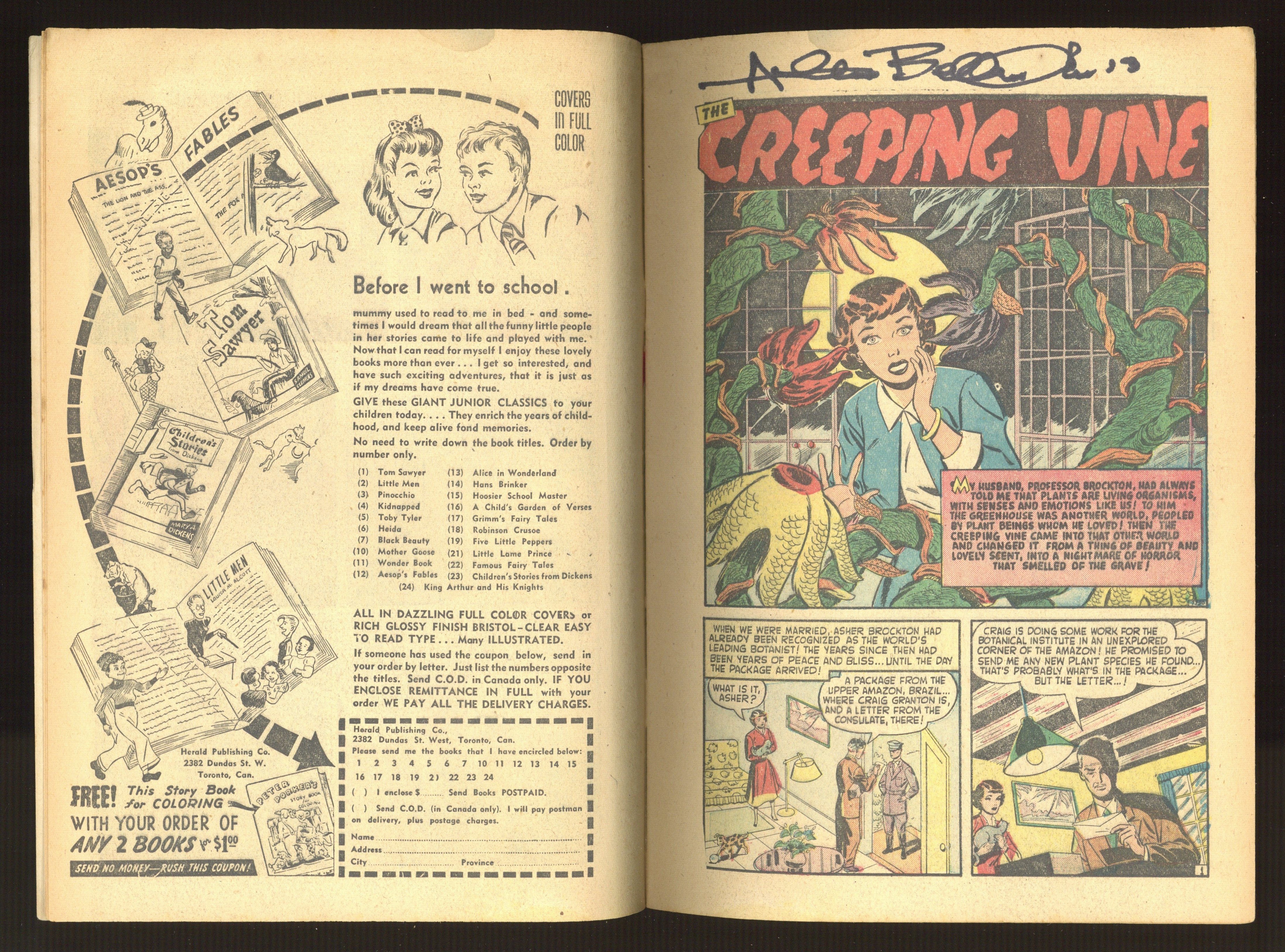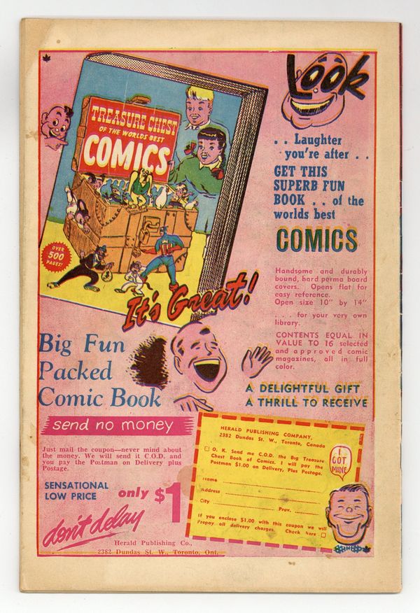 Canadian reprint. "The Stranger" (script by Hank Chapman), "The Creeping Vine," "No Escape" (script by Chapman, art by Russ Heath), and "The Storm." 36 pages, full color. Cover price $0.10.