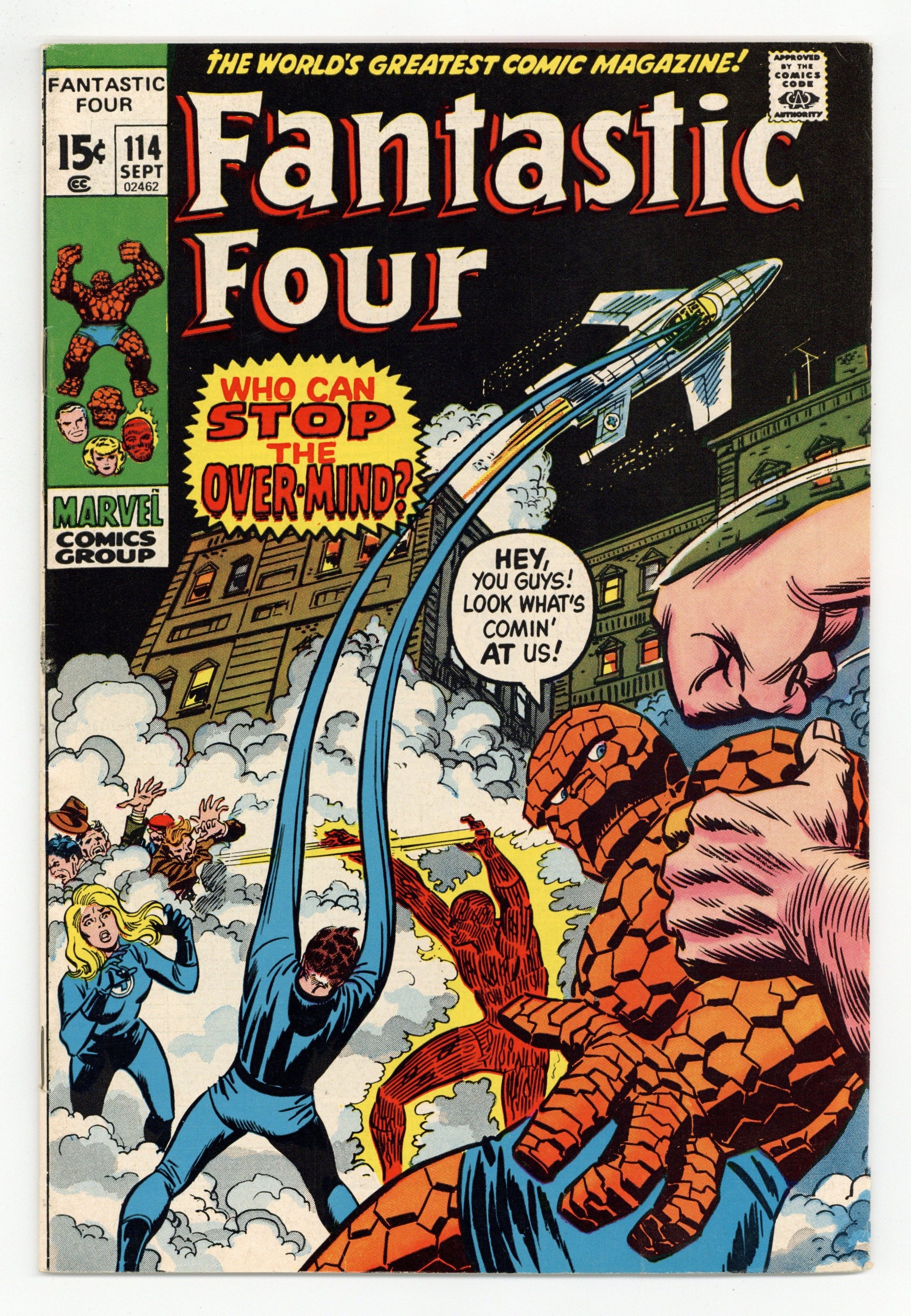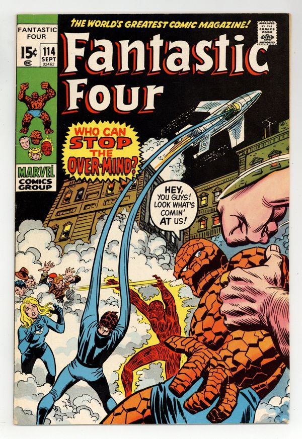 "But Who Shall Stop the Over-Mind?" Part 2 of 4. Script by Stan Lee. Pencils by John Buscema. Inks by Frank Giacoia. Cover by John Buscema, John Romita, and Frank Giacoia. Unbelievable! The Fantastic Four are forced to post bail after being arrested for the destruction caused to New York City during the Thing vs. Hulk clash two issues ago! Has the whole city turned against the FF? Or could the Over-Mind be subtlety manipulating everything? Either way, the fabulous foursome will get their first shot at the Over-Mind very soon! And it's going to be a learning experience! Cameo appearance by the Watcher. Flashback cameo by the Hulk. 36 pages Cover price $0.15.