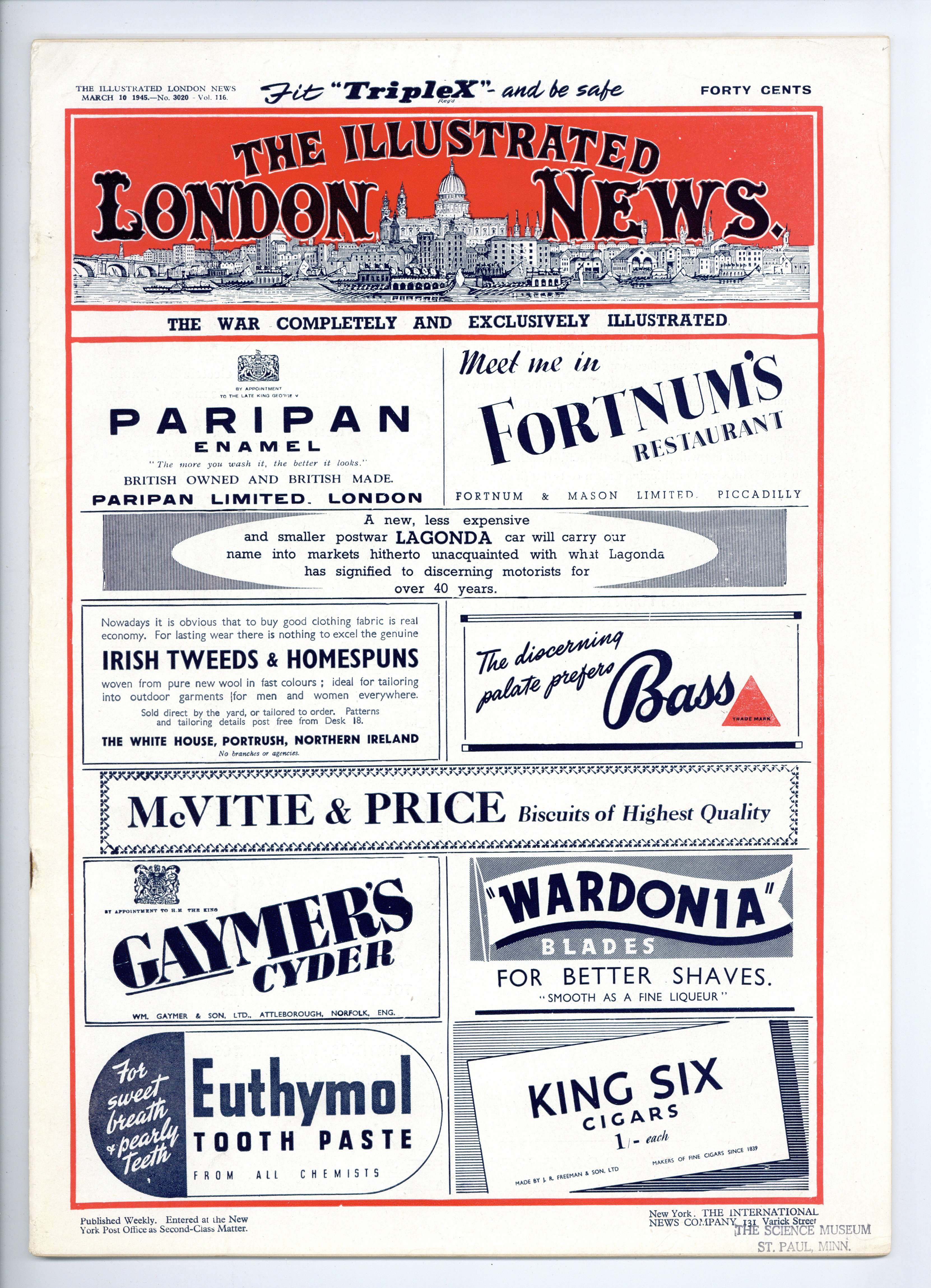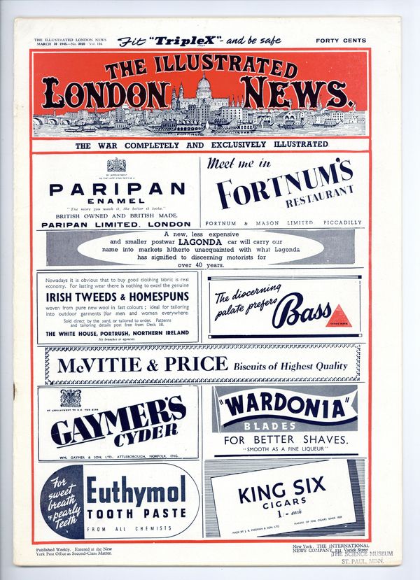Published Mar 1945 by Illustrated London News.$60.00- Spine split 10%. Staple rust: Moderate.