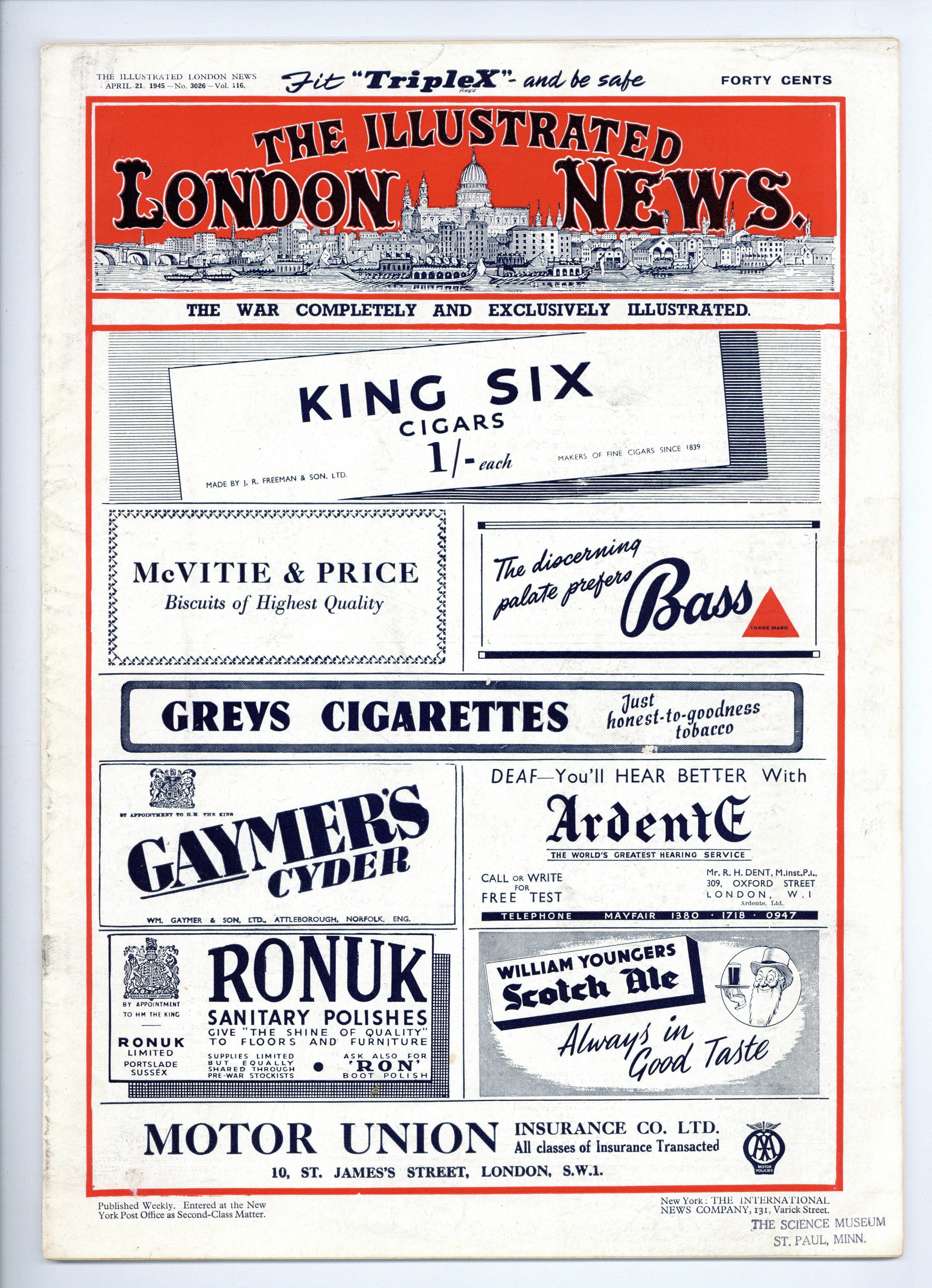 Published Apr 1945 by Illustrated London News.$64.00- Spine split 10%. Staple rust: Moderate.