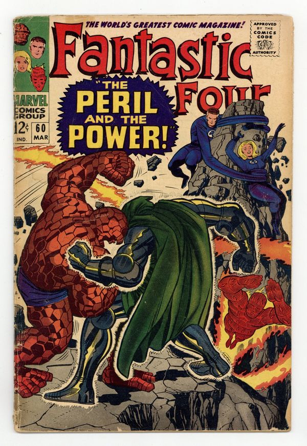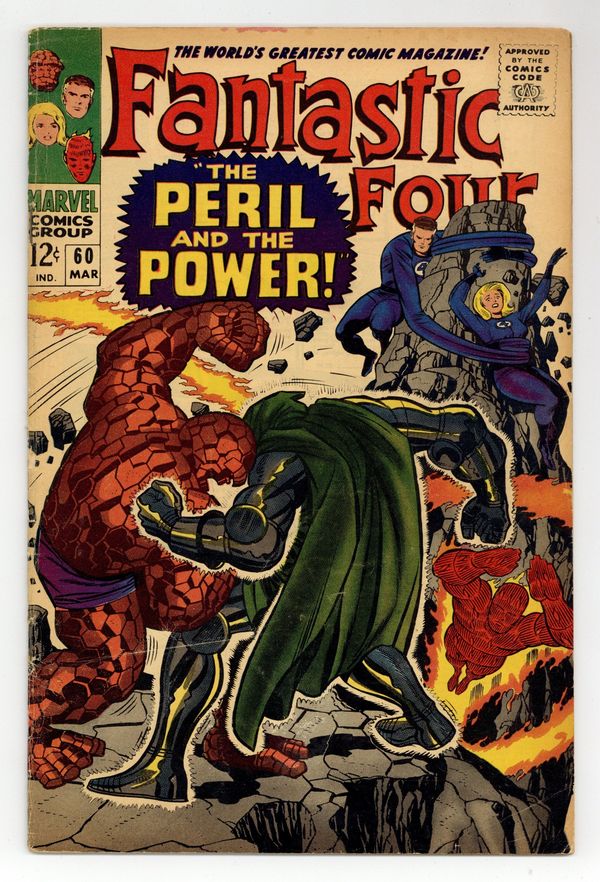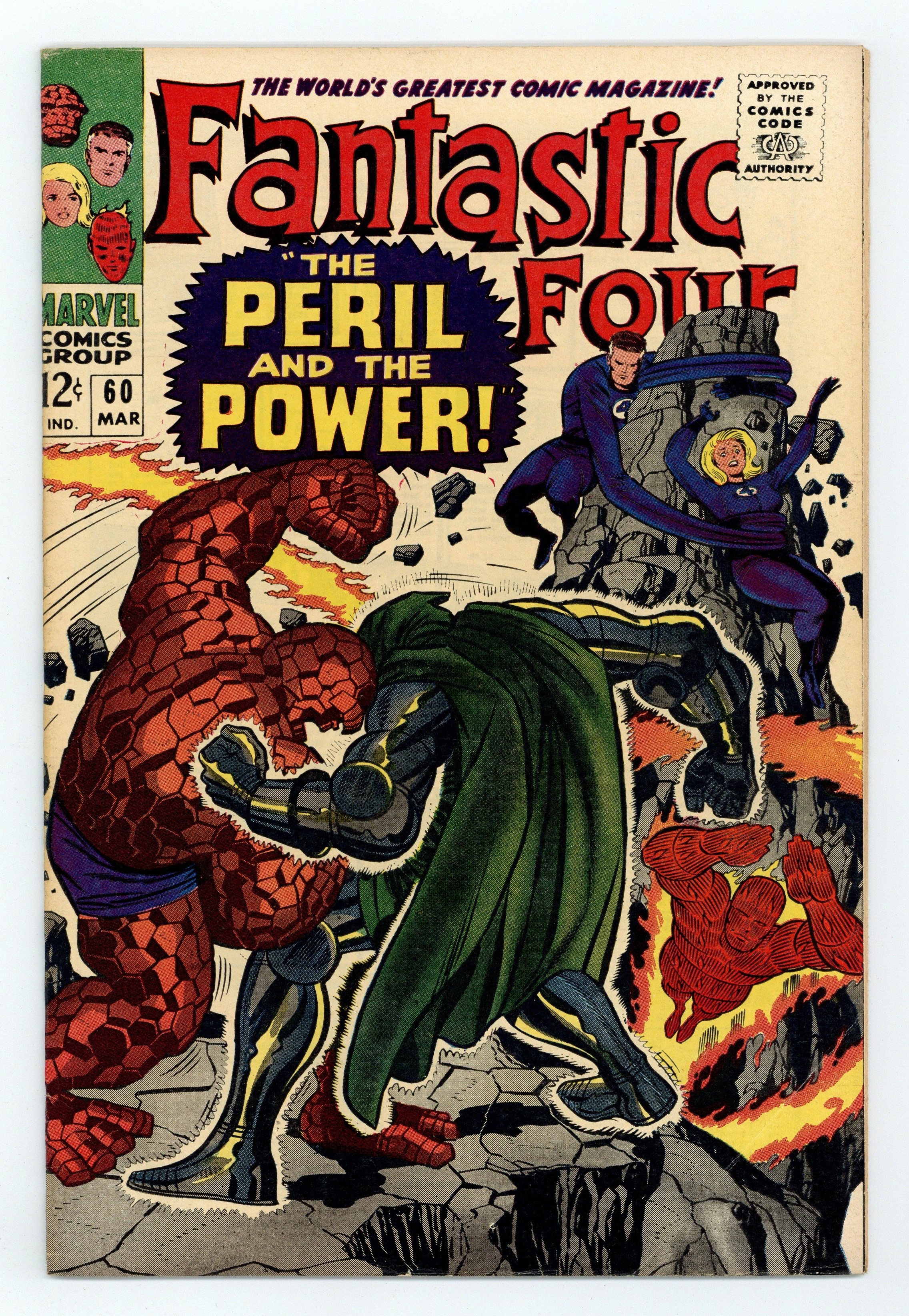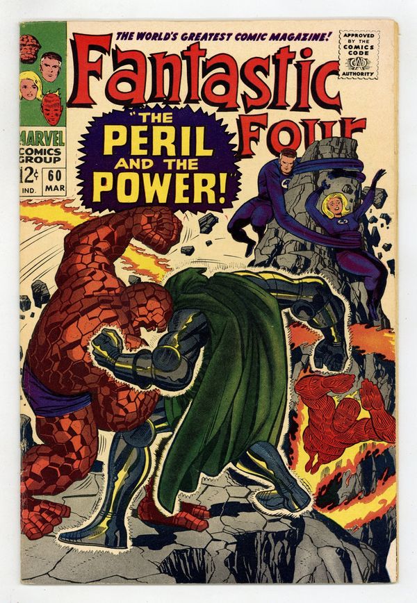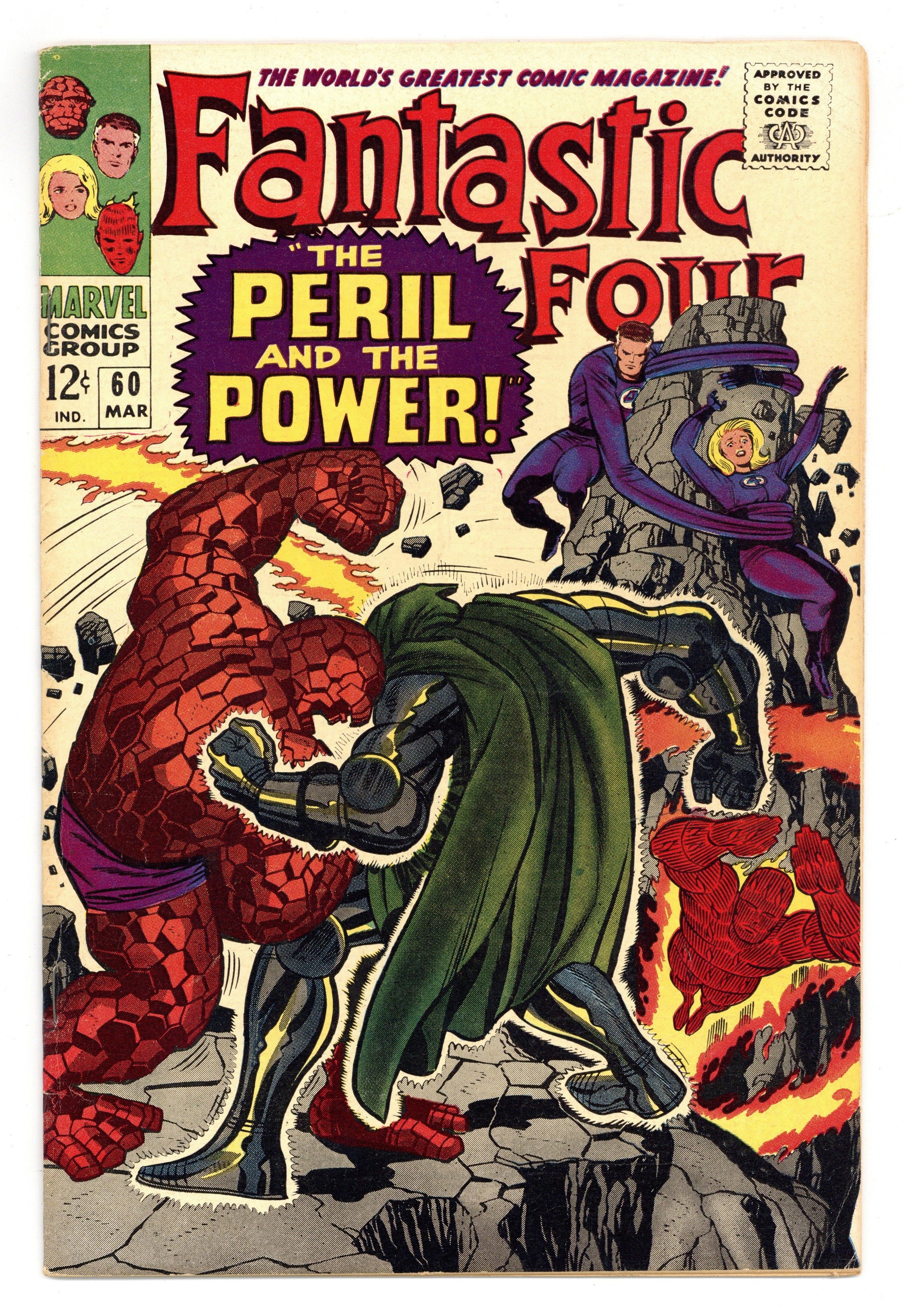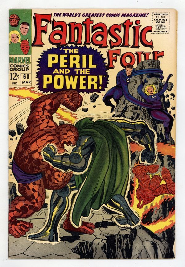 $22.50Cover pencils by Jack Kirby, inks by Joe Sinnott. Doctor Doom steals the Silver Surfer's cosmic powers (part 4 of 4) in The Peril and the Power!, script by Stan Lee and Jack Kirby (co-plot), pencils by Jack Kirby, inks by Joe Sinnott; The FF defeat Dr. Doom. Appearances by the Inhumans, the Watcher, and the Black Panther. 36 pgs. $0.12. Cover price $0.12.
