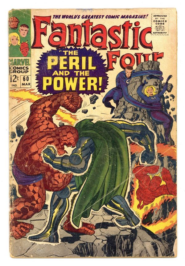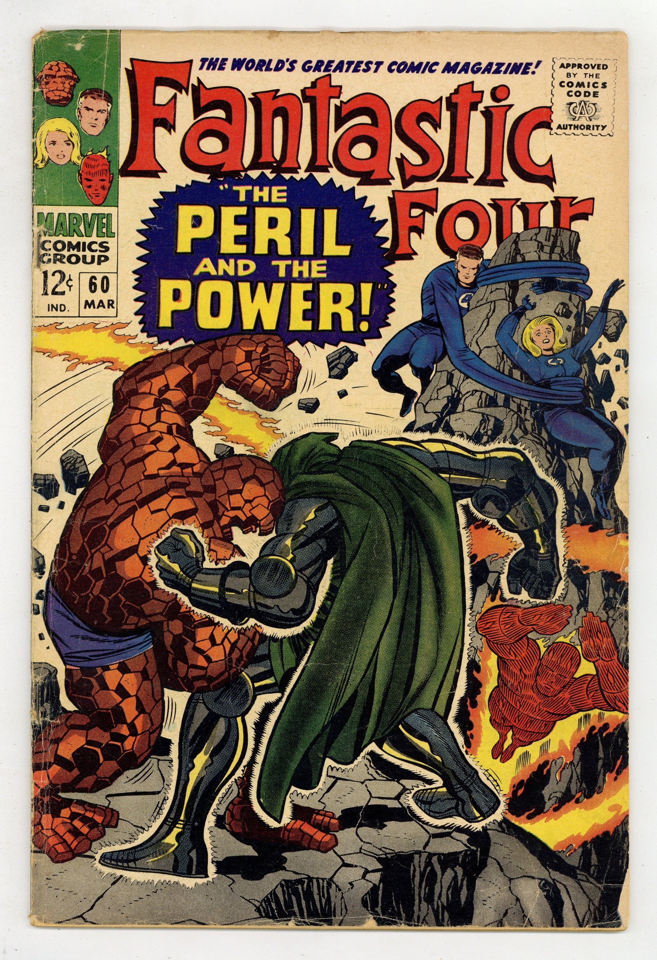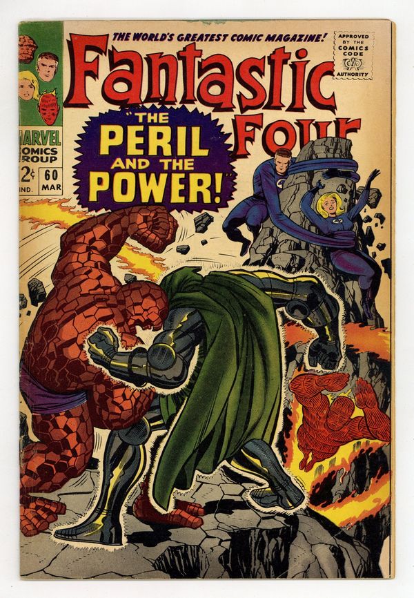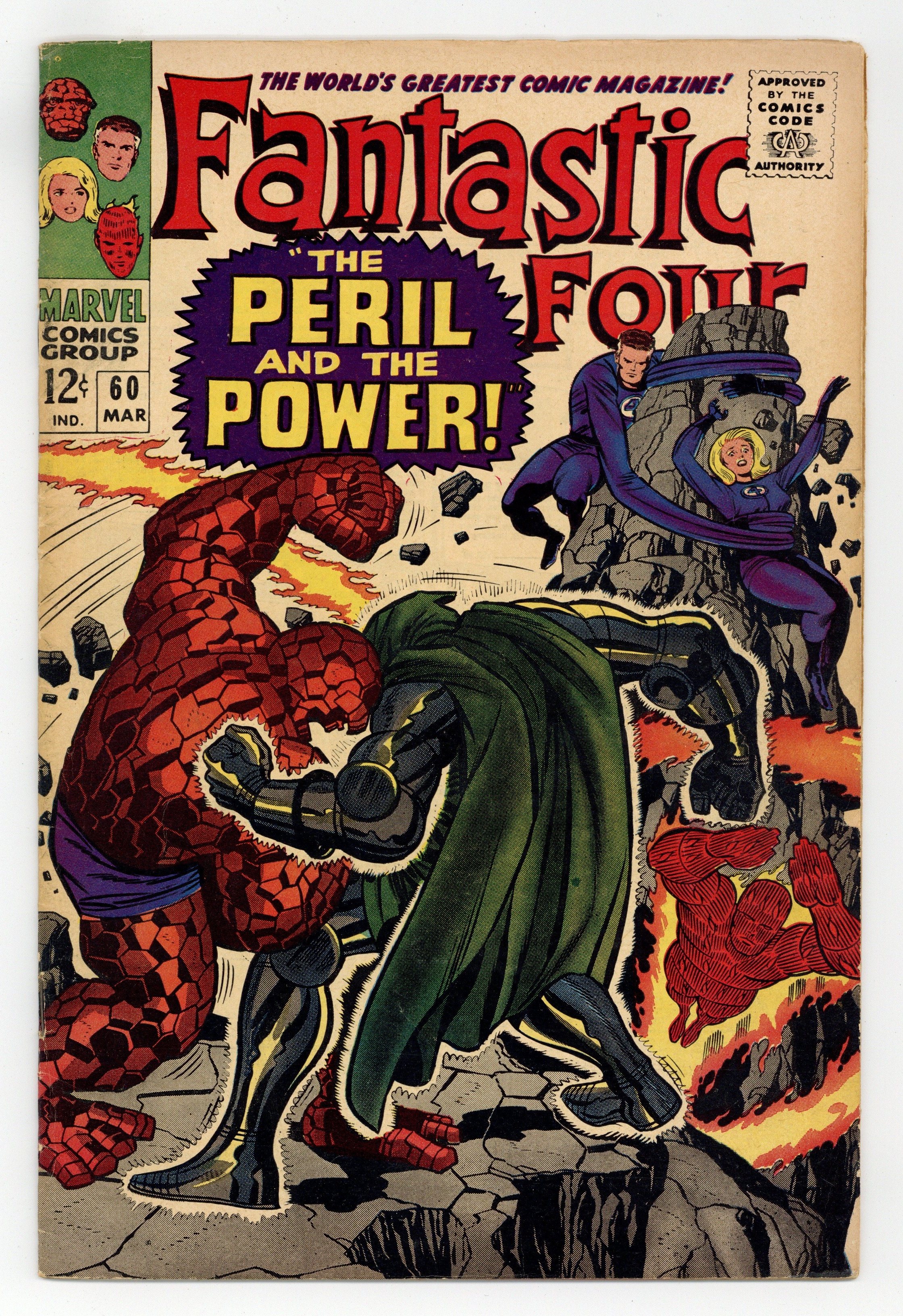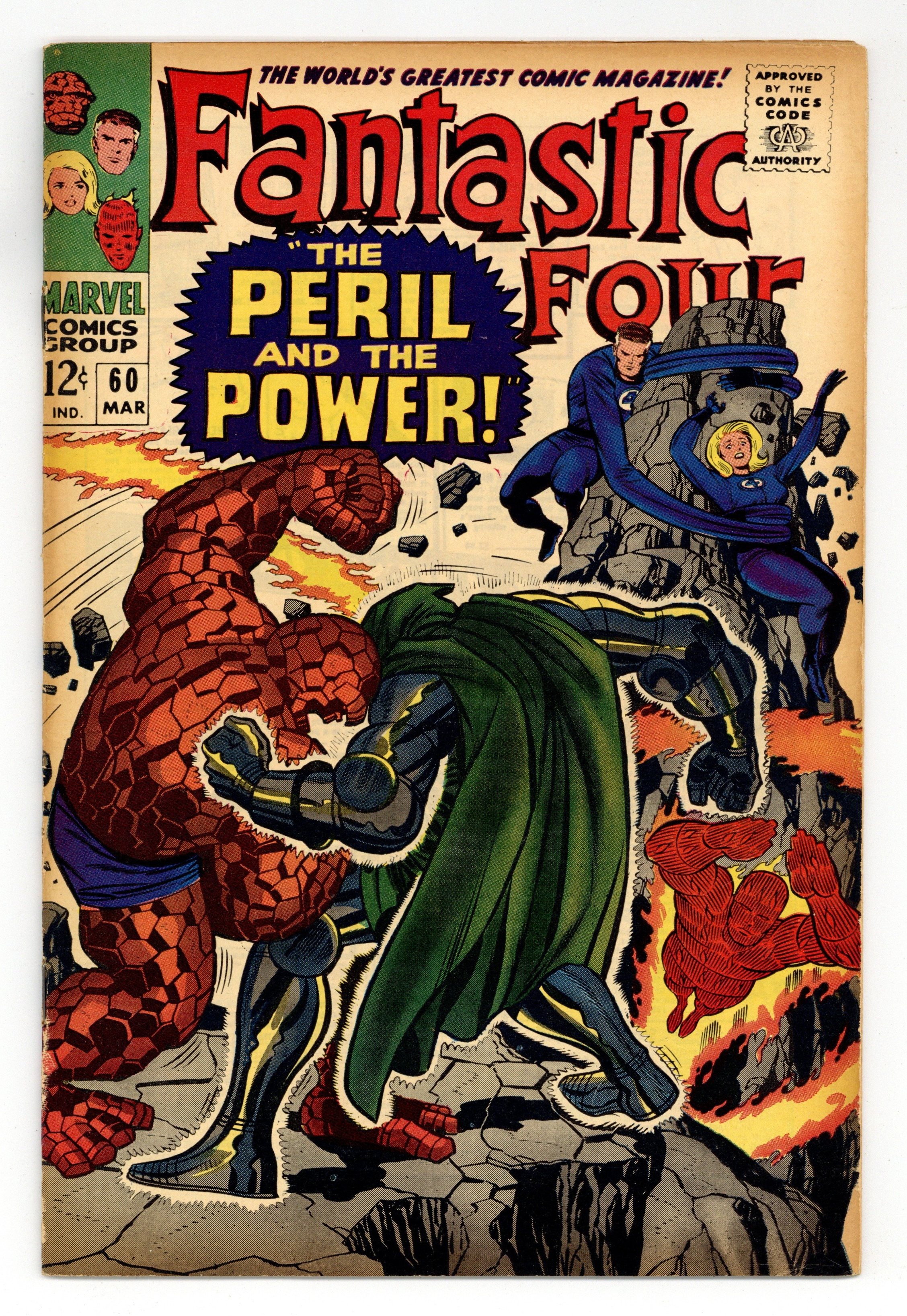 $22.50Cover pencils by Jack Kirby, inks by Joe Sinnott. Doctor Doom steals the Silver Surfer's cosmic powers (part 4 of 4) in The Peril and the Power!, script by Stan Lee and Jack Kirby (co-plot), pencils by Jack Kirby, inks by Joe Sinnott; The FF defeat Dr. Doom. Appearances by the Inhumans, the Watcher, and the Black Panther. 36 pgs. $0.12. Cover price $0.12.