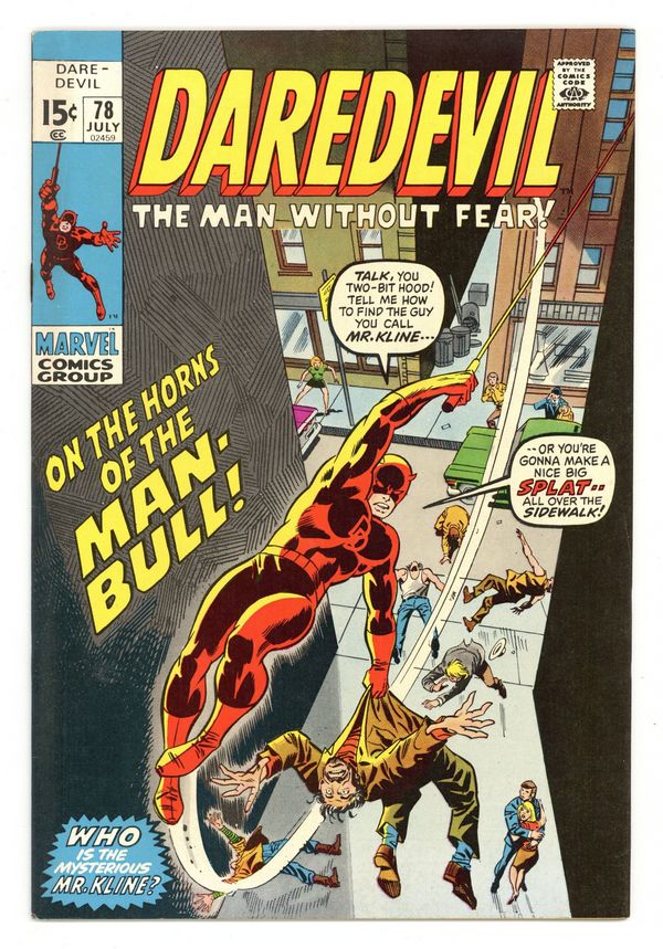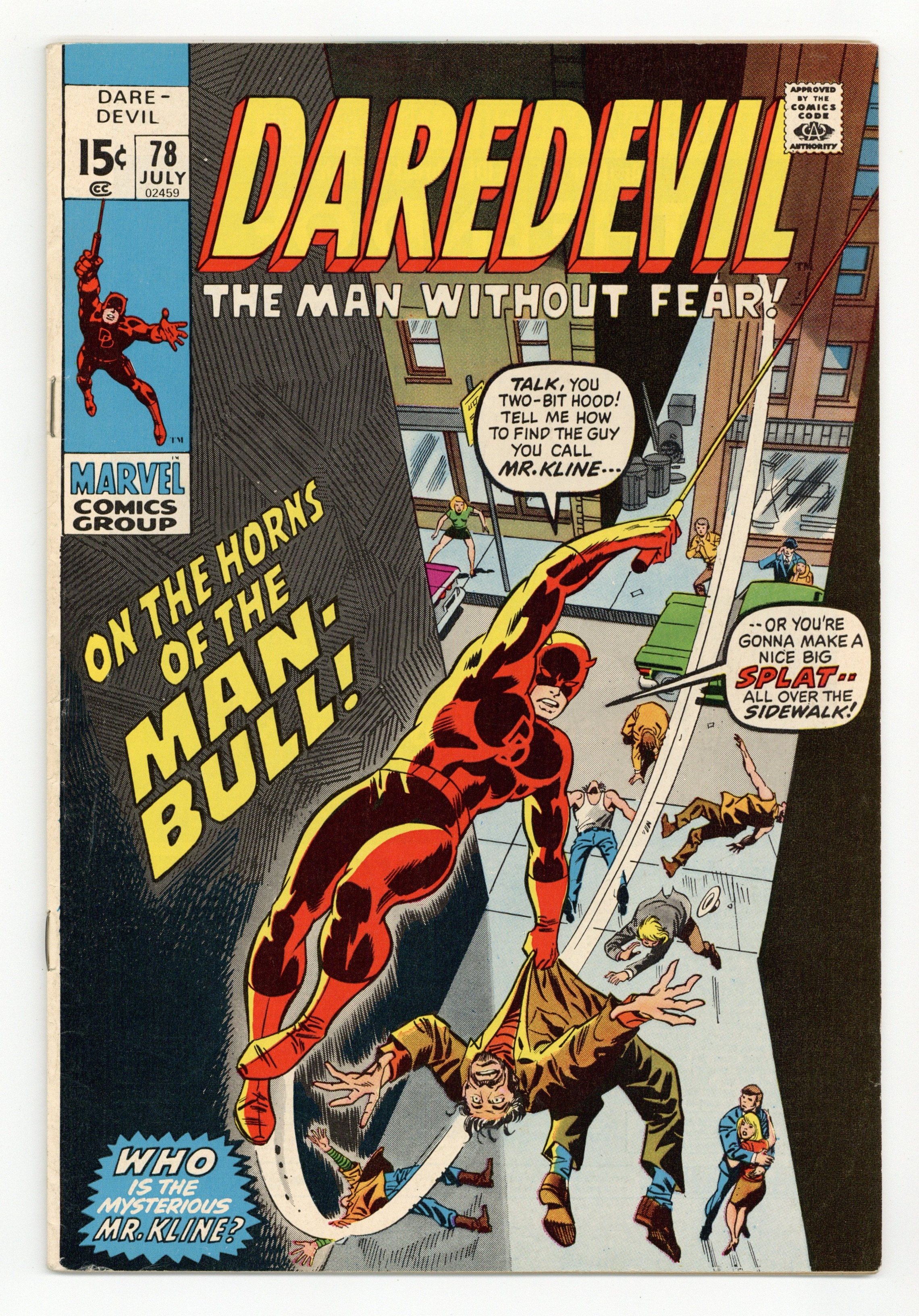 Cover pencils by Herb Trimpe, inks by Frank Giacoia. First appearance of the Man-Bull in The Horns of the Bull!, script by Gerry Conway, pencils by Gene Colan, inks by Tom Palmer; DD saves a couple from becoming a mad doctor's experiment, but the doctor uses one of his cronies for the process, turning him into the Man-Bull; part 1 of Mr. Kline opus in DD, which crosses over with Iron Man #s 41-45 and Sub-Mariner #42. 36 pgs. Cover price $0.15. Cover price $0.15.