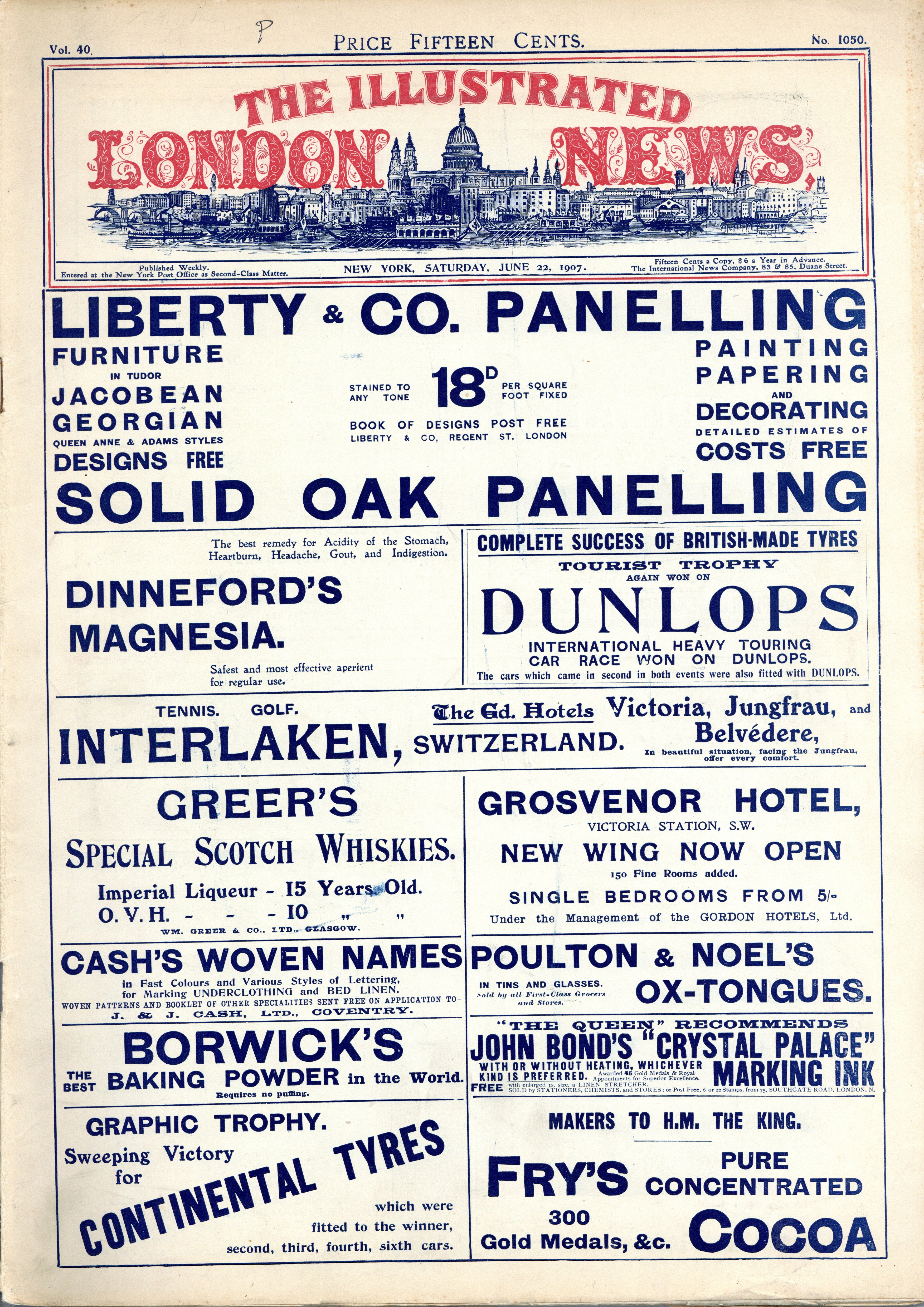 June 22, 1907. American version of the weekly news magazine published in England. 42 pages, four color, 11.5" x 16". NOTE: Information is limited on this series. Page counts vary from issue to issue. Page counts may be unconfirmed. May or may not include cover page. Cover price $0.15.