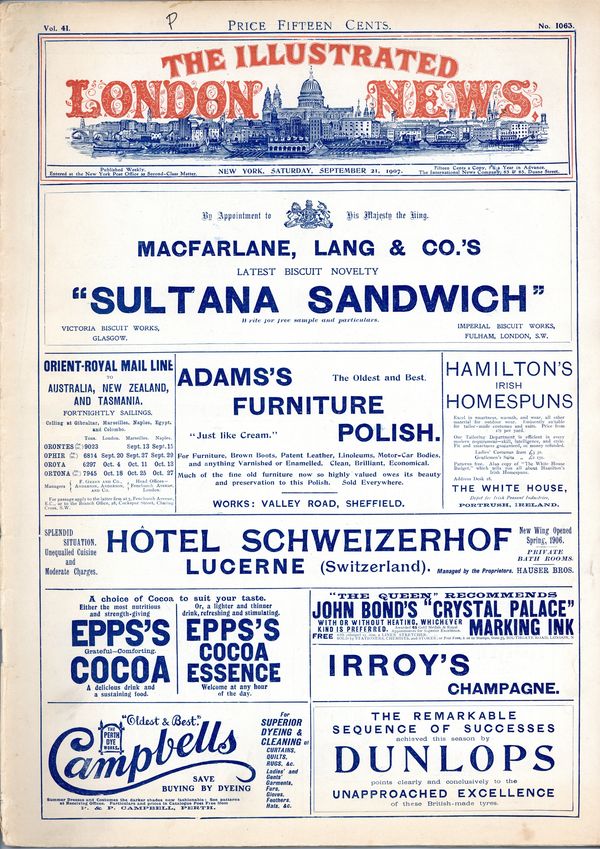 Published Sep 1907 by Illustrated London News.$20.00- Spine split 20%. Staple rust: Extensive.