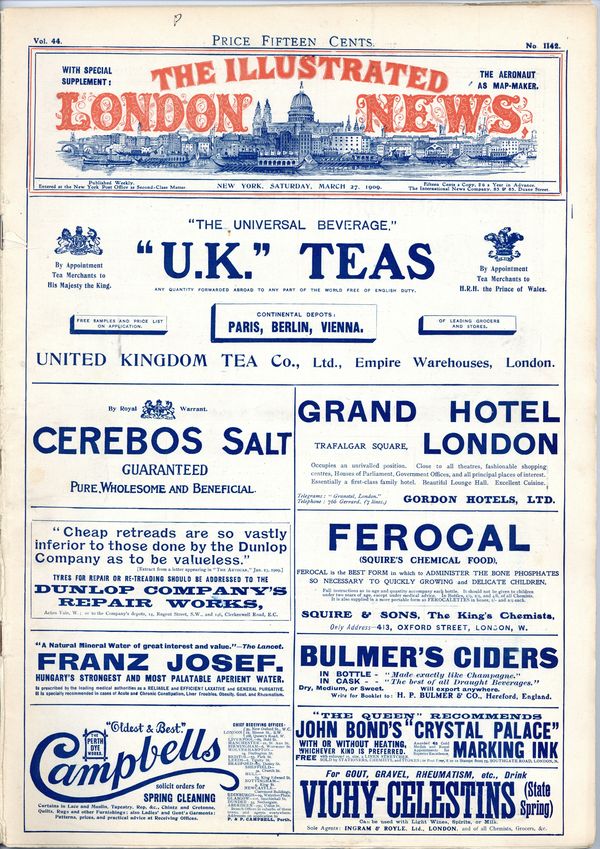 Published Mar 1909 by Illustrated London News.$30.00- Spine split 10%. Staple rust: Moderate.