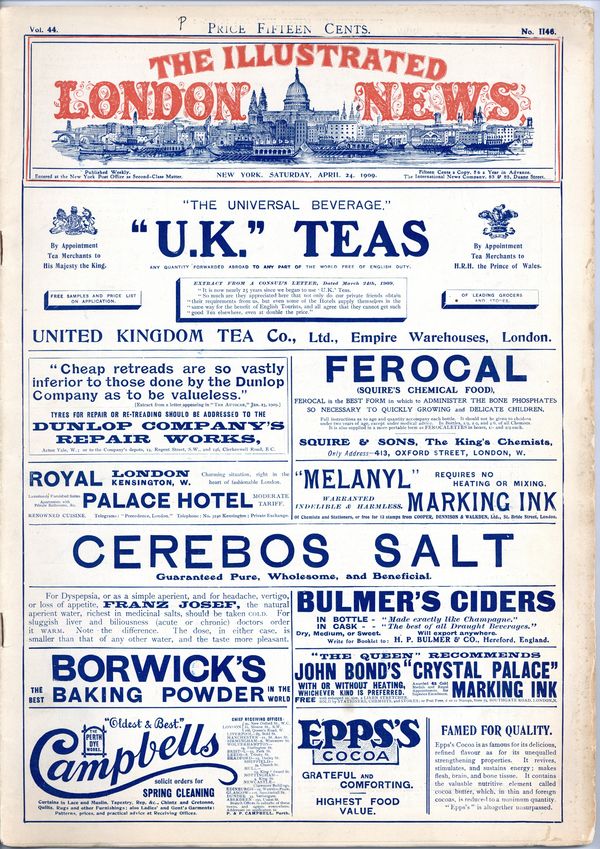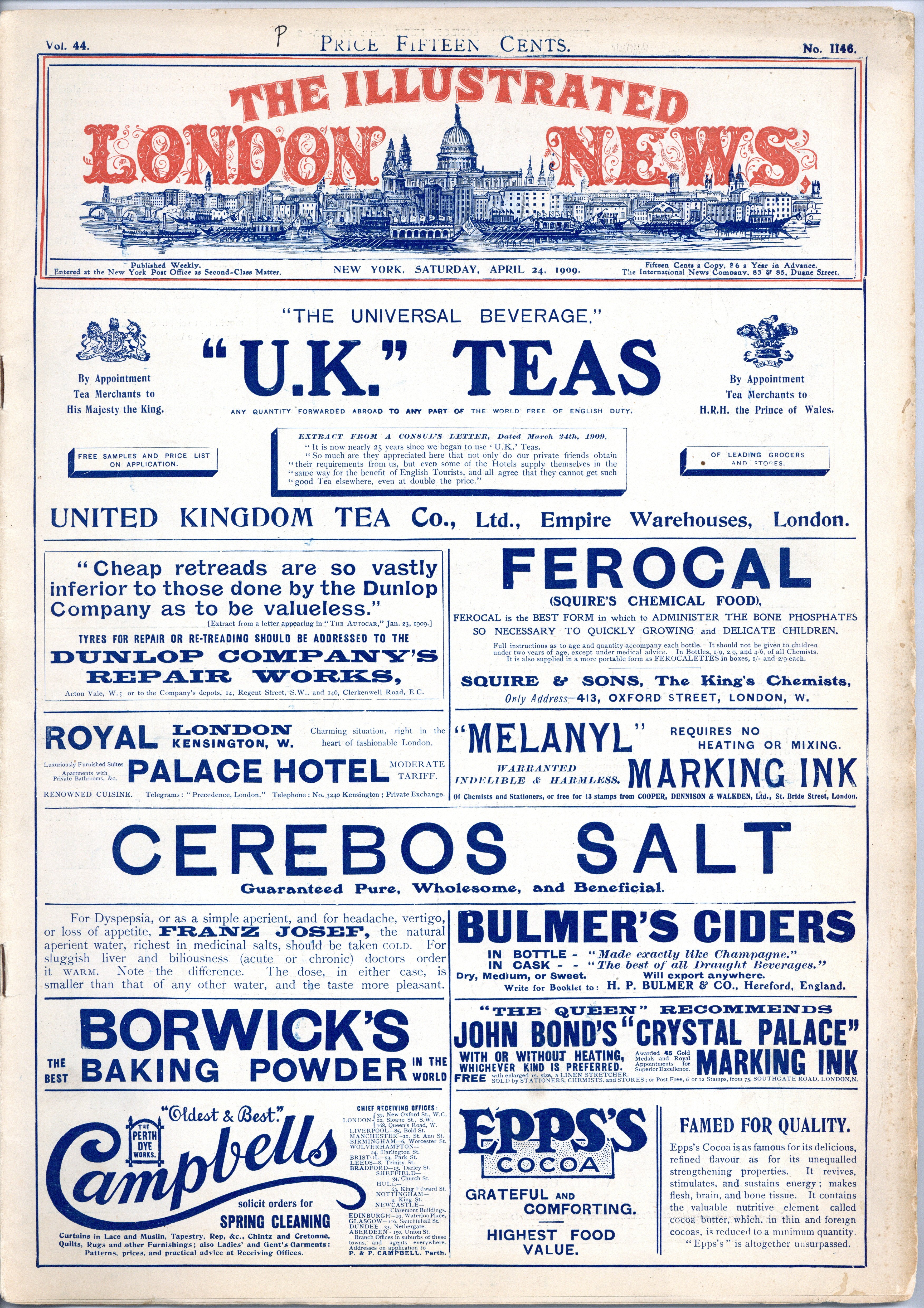 Published Apr 1909 by Illustrated London News.$32.00- Spine split 10%. Staple rust: Moderate.
