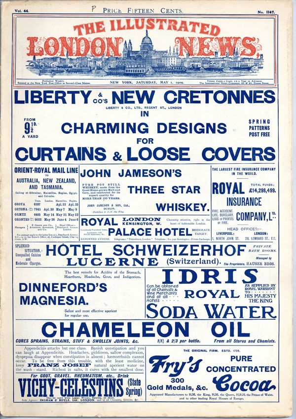 Published May 1909 by Illustrated London News.$26.00- Spine split 20%. Staple rust: Moderate.