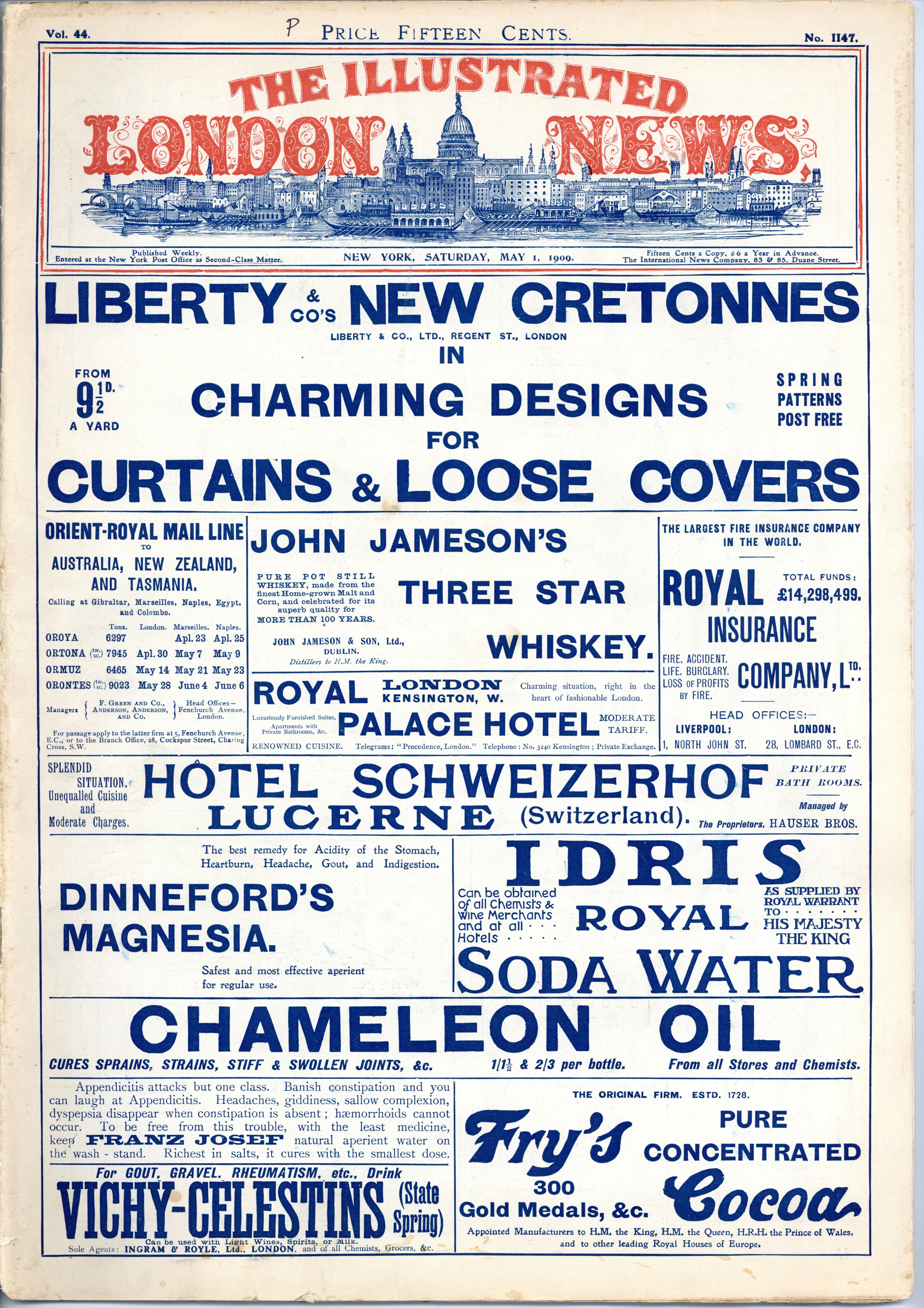 May 1, 1909. American version of the weekly news magazine published in England. 42 pages, four color, 11.5" x 16". NOTE: Information is limited on this series. Page counts vary from issue to issue. Page counts may be unconfirmed. May or may not include cover page. Cover price $0.15.