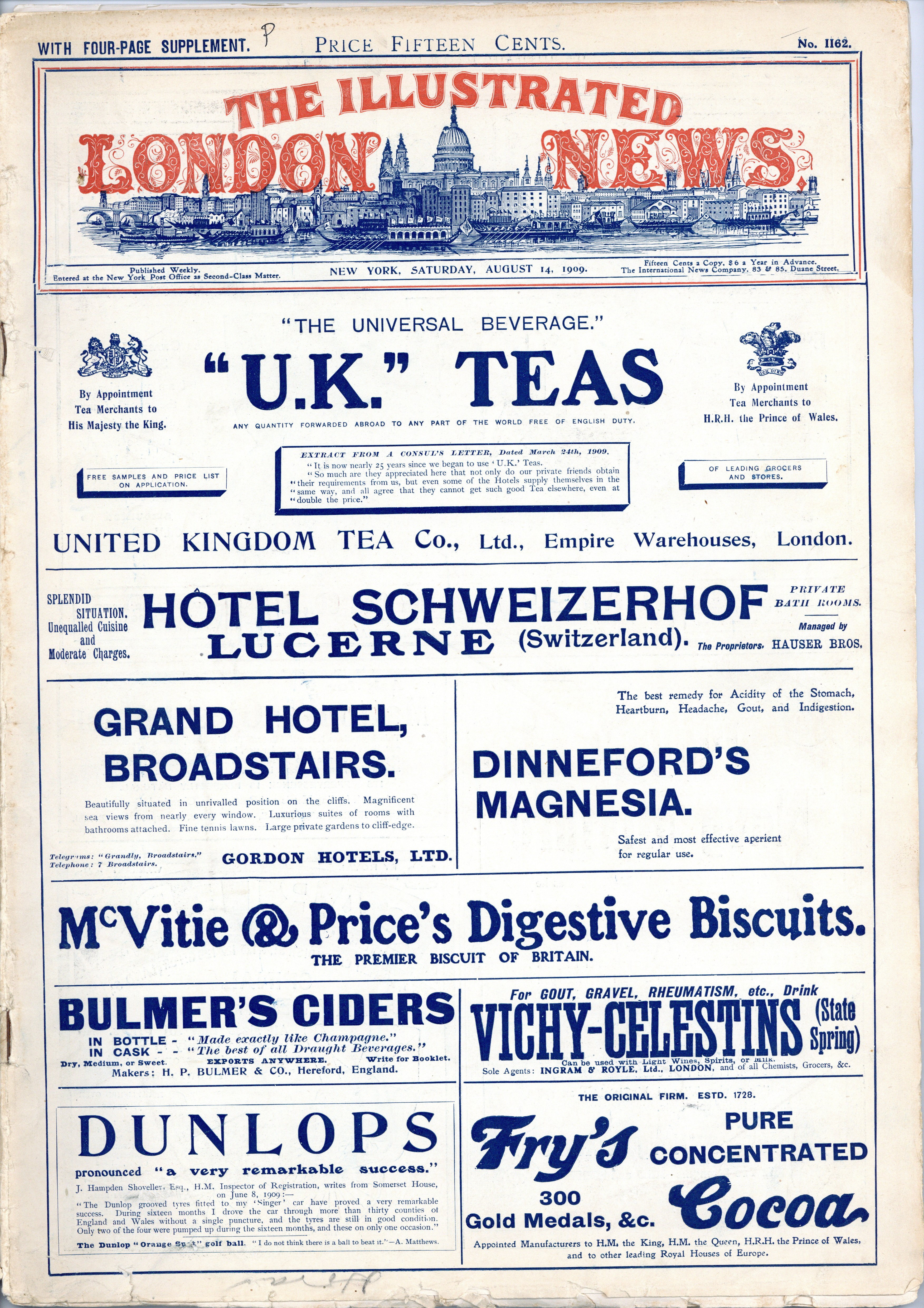 Published Aug 1909 by Illustrated London News.$26.00- Staple rust: Moderate.