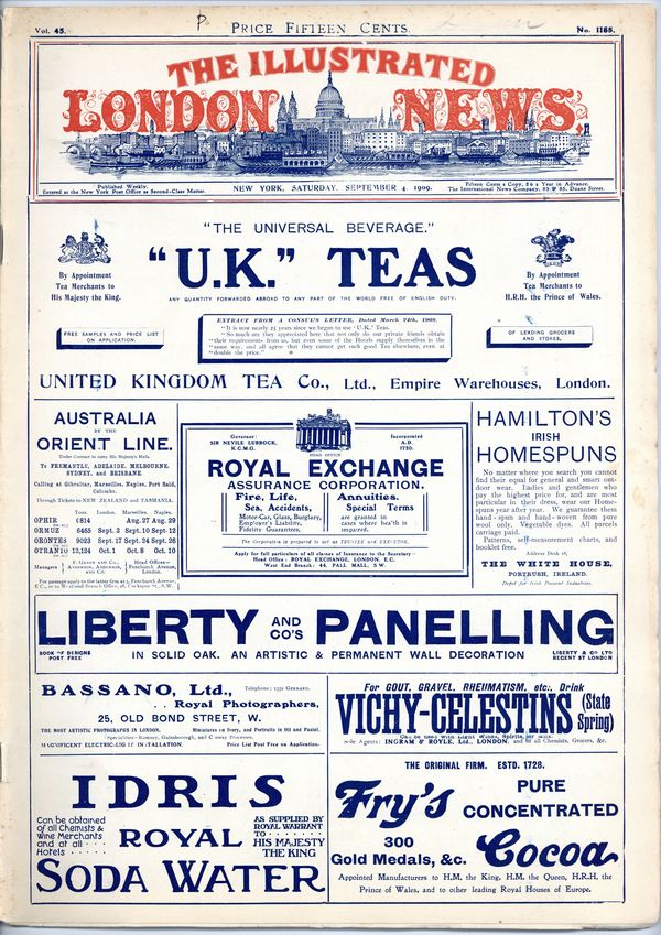 Published Sep 1909 by Illustrated London News.$32.00- Spine split 5%. Staple rust: Extensive.