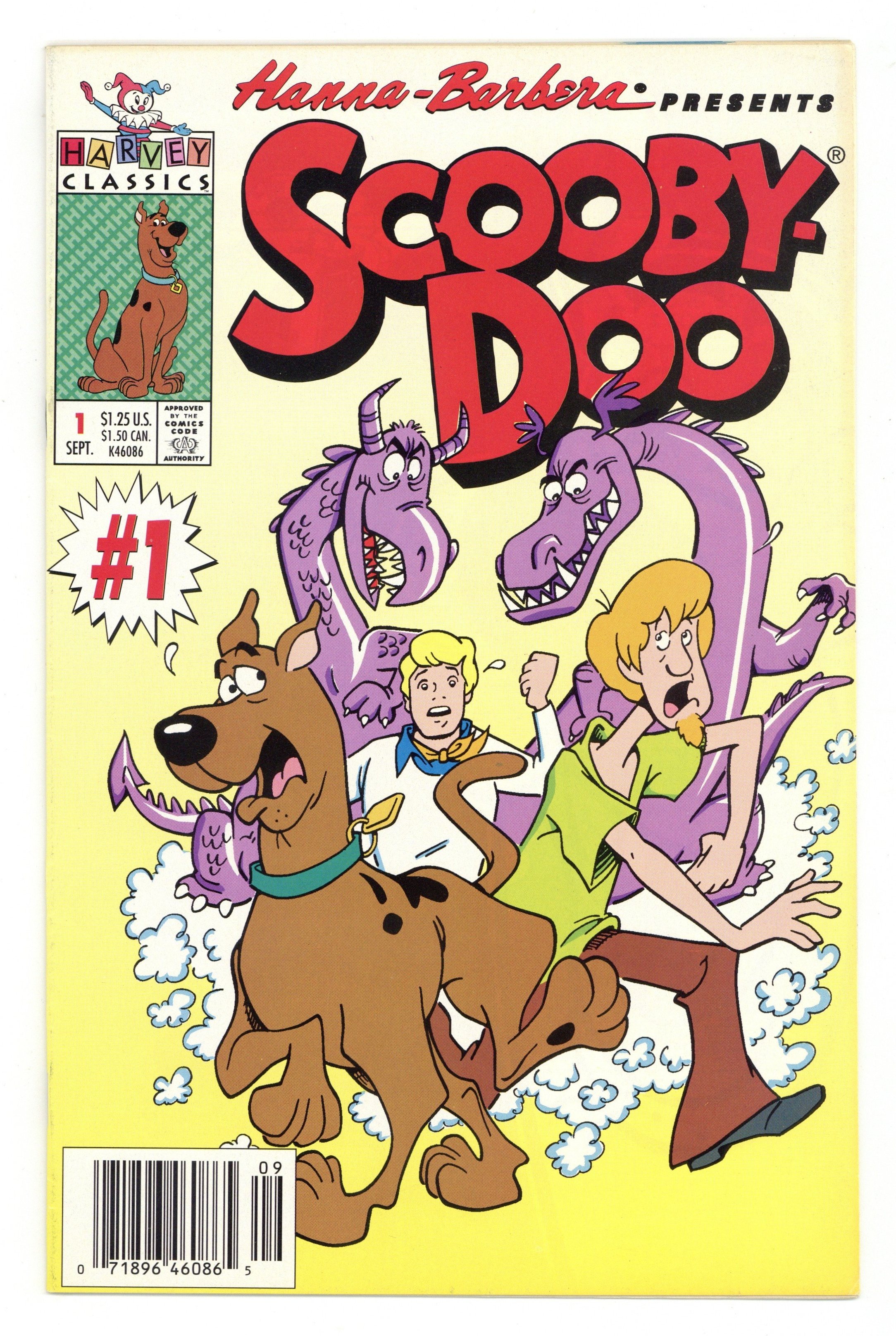 $7.80Newsstand Edition. Stories and art by Joe Gill and Bill Williams. Scooby and the Mystery Inc. gang return to comics as part of Harvey Comics' revival in the early 1990s. The gang goes to visit a distant relative of Shaggy's, who just happens to live in a haunted house. During a visit to a Western town, the kids meet Marshal Whynott Burp - who died in 1887! The team investigates mysterious sightings of the monster "Nertzosaurus." Scooby and the Nertzosaurus; The Ghost Went West; Hassle in the Castle. 32 pages, Full Color. Cover price $1.25.