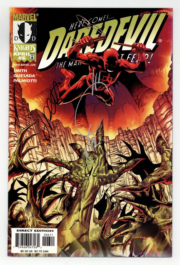 Cover pencils by Joe Quesada, inks by Jimmy Palmiotti. Guardian Devil Part 6: The Devil Divested, script by Kevin Smith, pencils by Joe Quesada, inks by Jimmy Palmiotti; Matt agonizes over Karen's death; DD pulls himself together and searches out Macabes only to find his foe is truly Mysterio. 36 pgs. $2.50. Cover price $2.50.