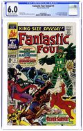 Tags: Fantastic Four$32.00The Black Panther and the Inhumans help the FF battle Psycho-Man (his first appearaince) in "Divide and Conquer!" Script by Stan Lee, pencils by Jack Kirby, inks by Frank Giacoia (not Joe Sinnott as credited). Silver Surfer back-up (first solo story), "The Peerless Power of the Silver Surfer!" by Lee/Kirby/Giacoia. This issue also has eight pages of pin-ups by Kirby/Giacoia and a short story, "This Is a Plot?" Script and pencils by Kirby, inks by Giacoia. Kirby/Giacoia cover. 68 pages, full color. Cover price $0.25.