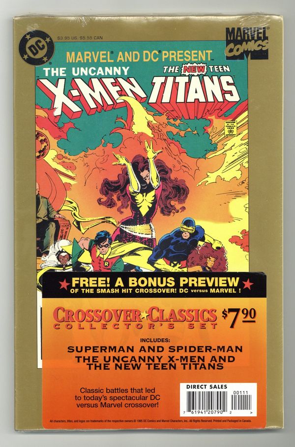 Polybagged set includes both DC and Marvel Present Superman and Spider-Man (1996 Marvel/DC) Collector's Edition Reprint and Marvel and DC Present The Uncanny X-Men and The New Teen Titans (1995 Marvel/DC) Collector's Edition Reprint. Also included is Marvel vs. DC Preview (1995). Cover price $7.90.