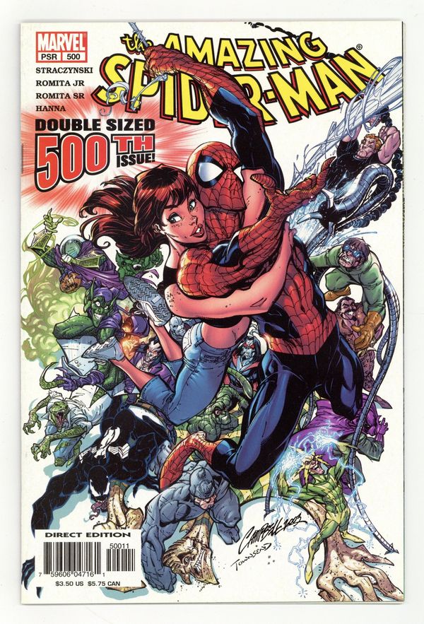 Written by J. MICHAEL STRACZYNSKI Penciled by JOHN ROMITA Jr. & JOHN ROMITA Sr.! Cover by J. SCOTT CAMPBELL Two generations of the greatest Spider-Man artists of all time mark a milestone! It's Peter Parker's birthday ... but how do you throw a surprise party for someone with a Spider- sense? Someone figures out how and Spidey spends his special day looking back at his career and EVERY villain he's faced over those years ... against his will! A special story for Spidey fans new & old! Spider-Man battles an inter-dimensional threat with help from a raft of guest stars including the FF, Thor, Iron Man, Cyclops, and Dr. Strange. Classic Spider-Man villains including Doc Ock and the Green Goblin also make their appearance! 52 pgs. Cover price $3.50.