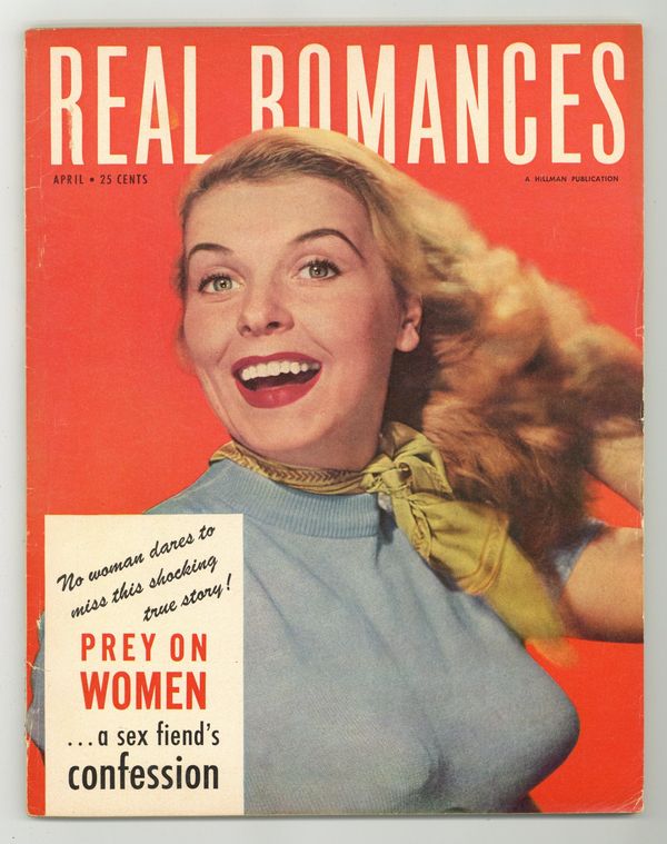 Published 1953 (est.) by Real Romances Inc..$26.00- 1.5" Cumulative spine split, water damage, writing on back cover coupons.