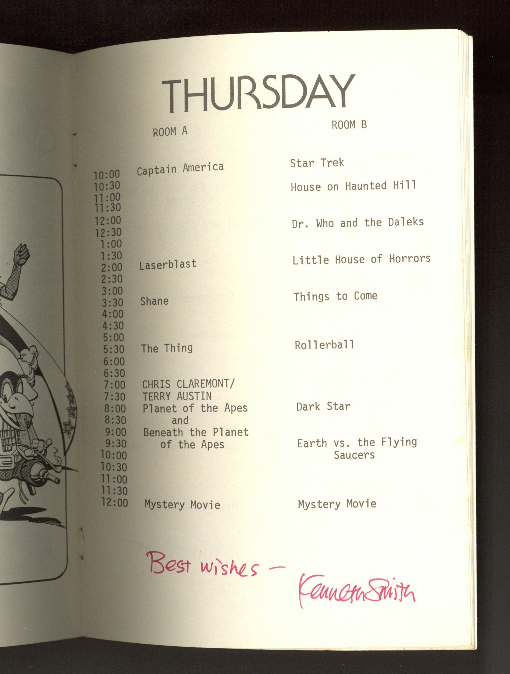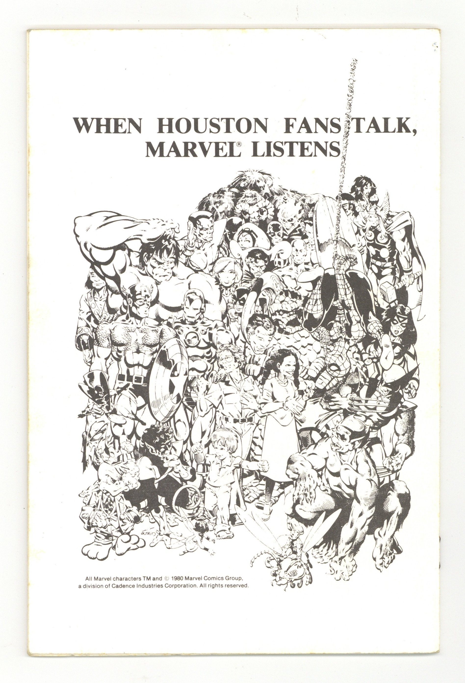 Houston Con '80. This program contains schedule and biographies of artist and writers attending. 5.5" x 8.5", 28 pages, B&W. Cover price $1.00.