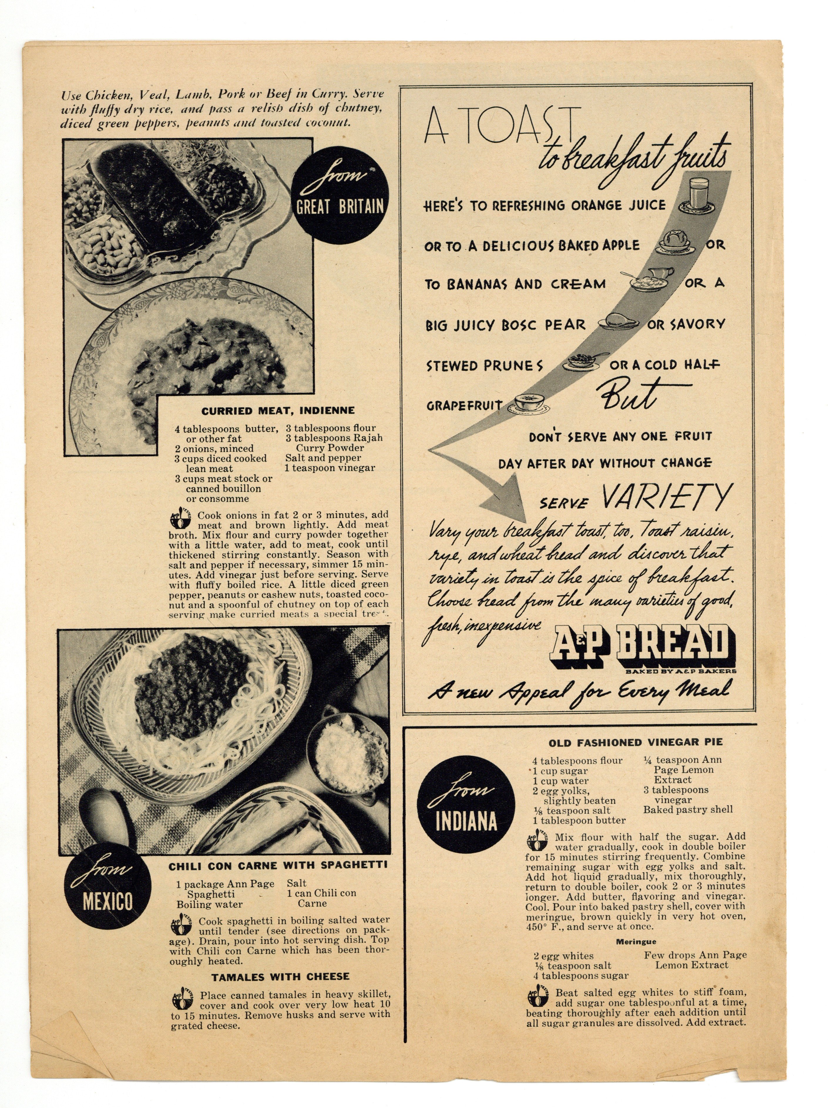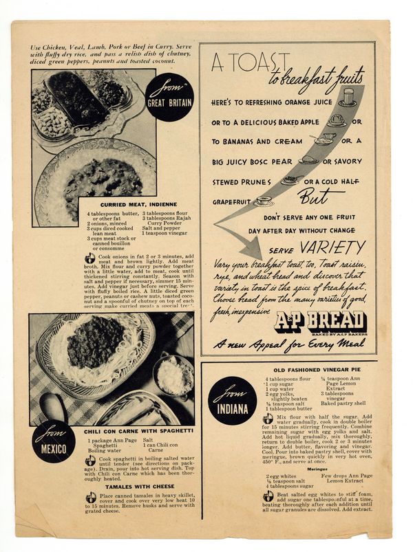 In-store promotional magazine produced A&P Grocery stores. 8.5" x 11.75", 8 pages, B&W