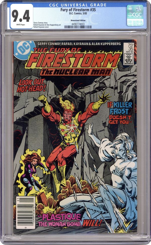 Newsstand Edition. "Winter Frost." Martin Stein ponders moving to another city while Firestorm battles Plastique and the new Killer Frost. Script by Gerry Conway, pencils by Rafael Kayanan, inks by Alan Kupperberg. Cover by Kayanan. Cover price $0.75.
