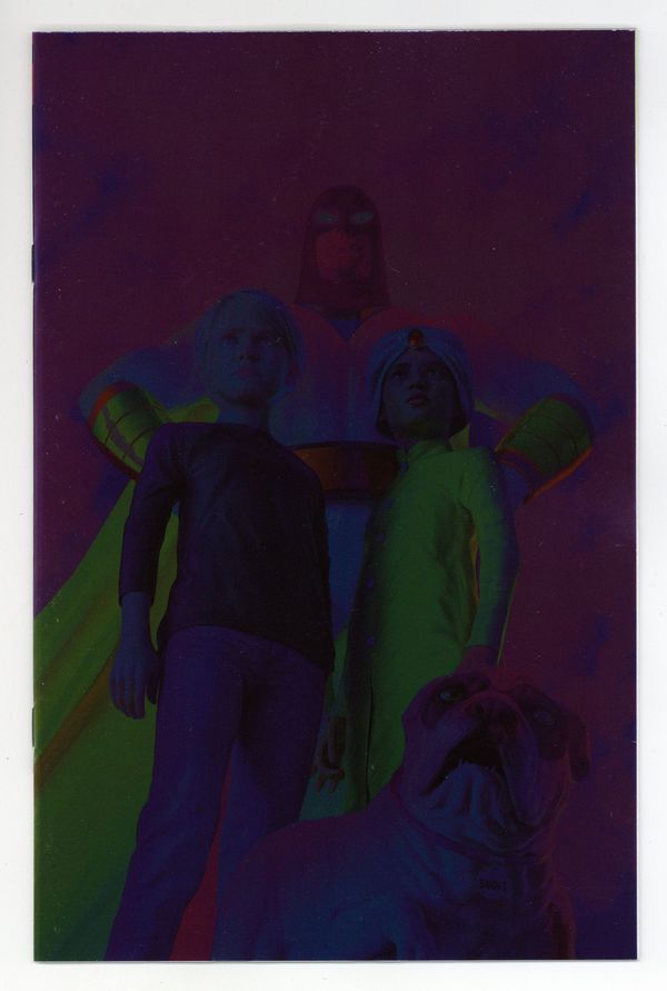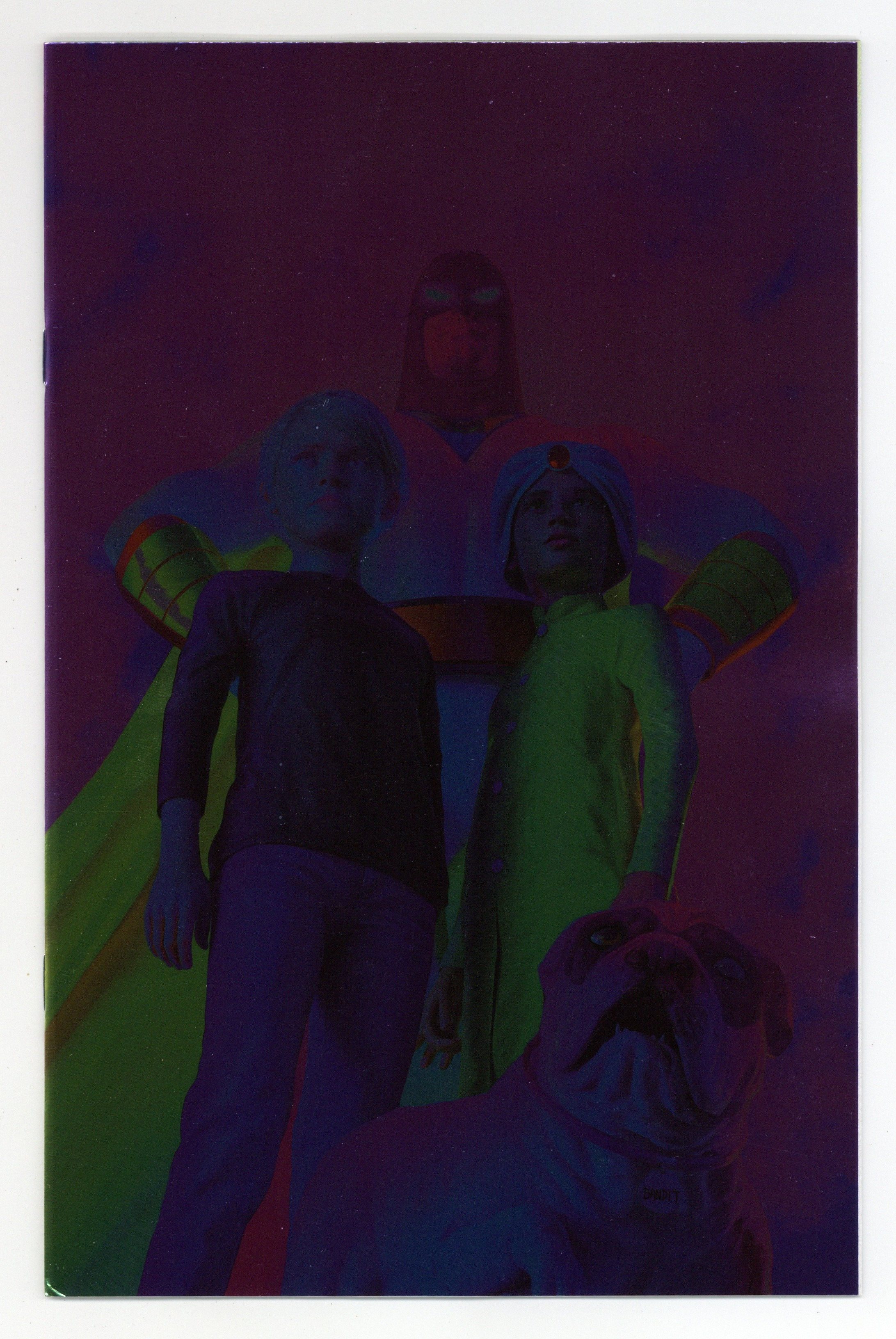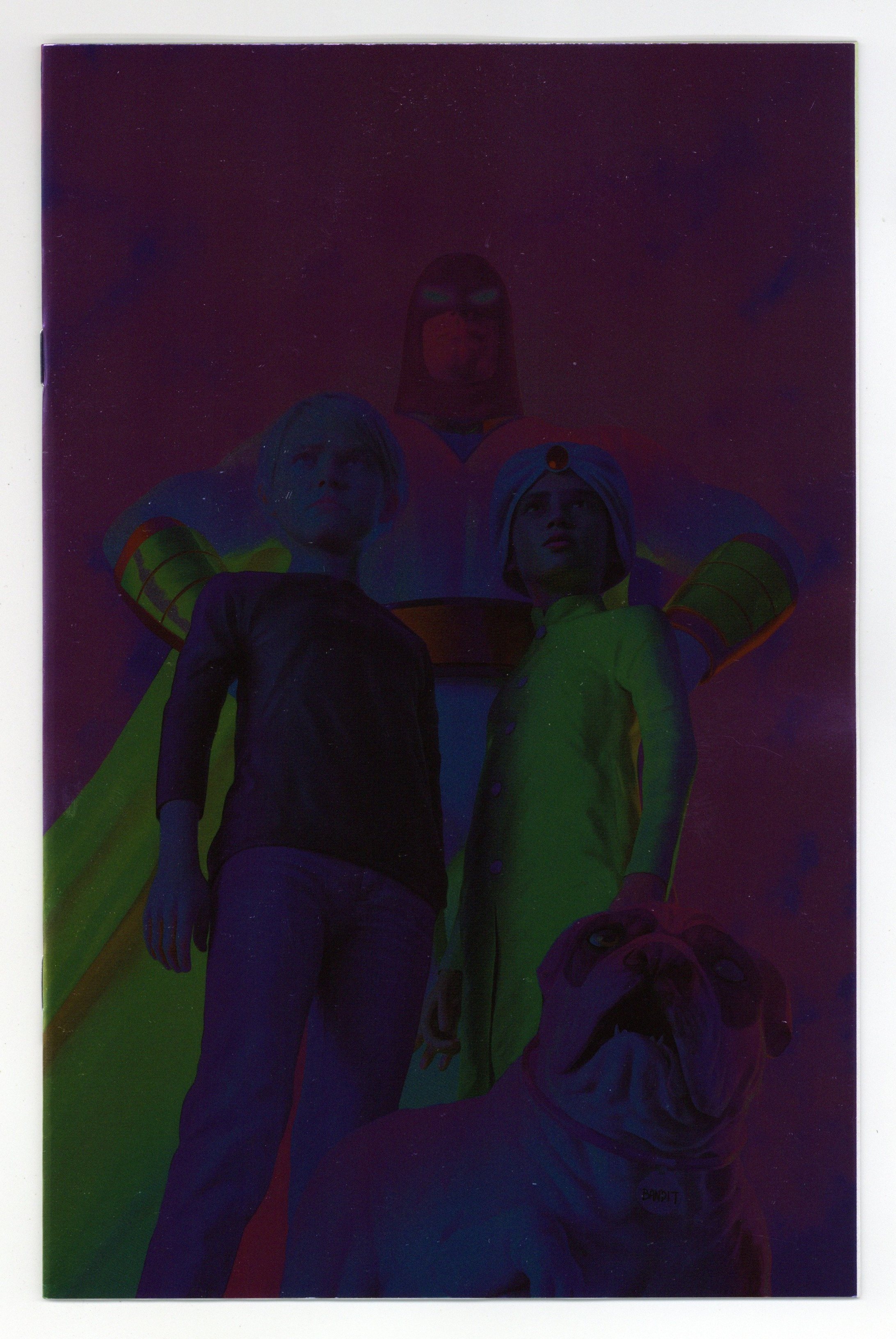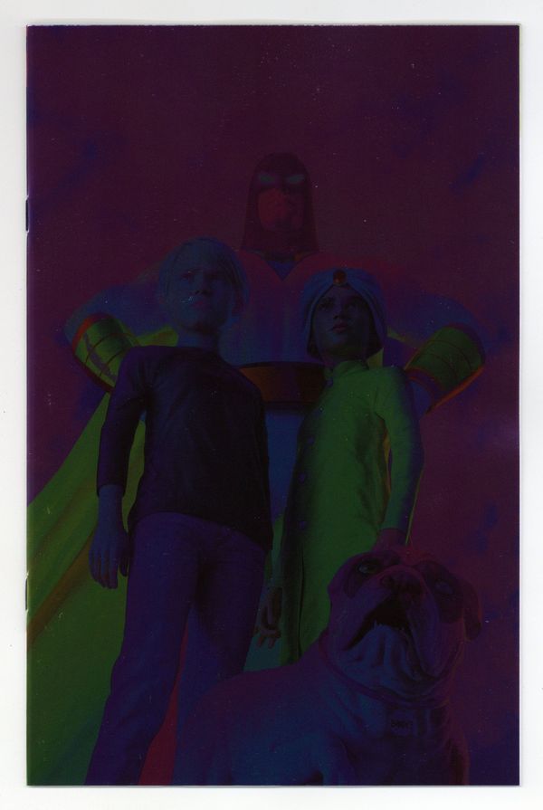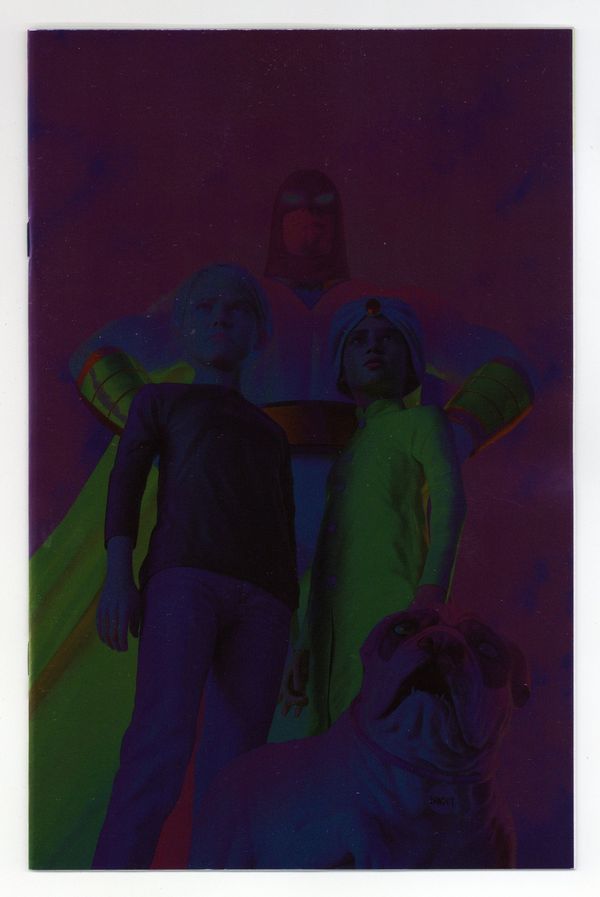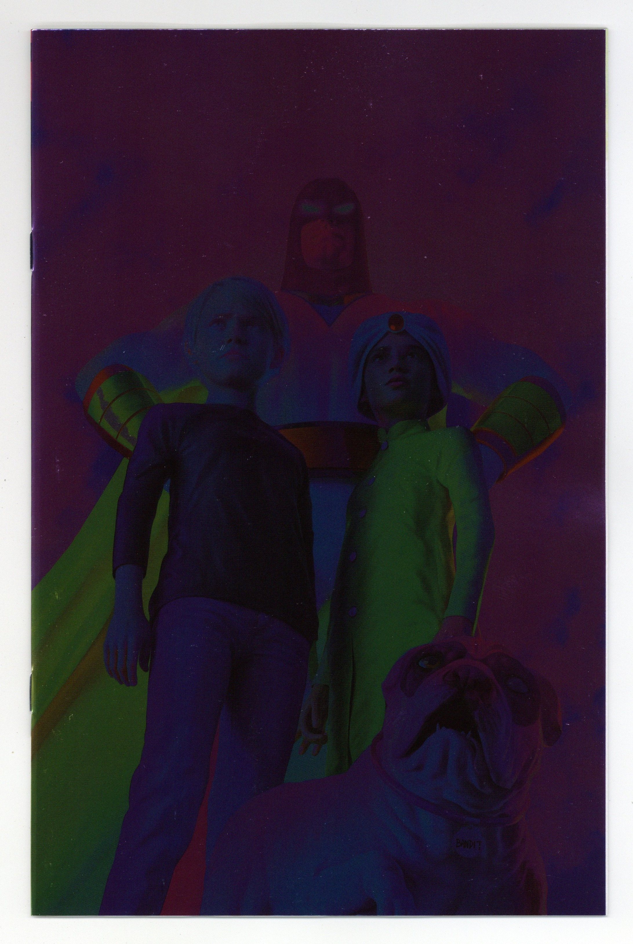 Published May 2025 by Dynamite Entertainment.$15.00Virgin Foil Cover. Written by Joe Casey. Art by Sebastian Piriz. Cover by Mark Spears. At last, the meeting the cosmos demanded! The Quest Family is legendary for how far they'll go in the spirit of exploration and discovery, but now they're headed for outer space! Jonny and the gang are brought in to investigate a mysterious potentially alien spacecraft being held at Area 51. And where there's a spaceship there's bound to be aliens, right? What happens when Space Ghost and Jonny Quest cross paths? The greatest entertainment event of the twenty-first century, that's what! Brought to you by the acclaimed creative team of Jonny Quest! 32 pages, full color. Rated T Cover price $29.99.