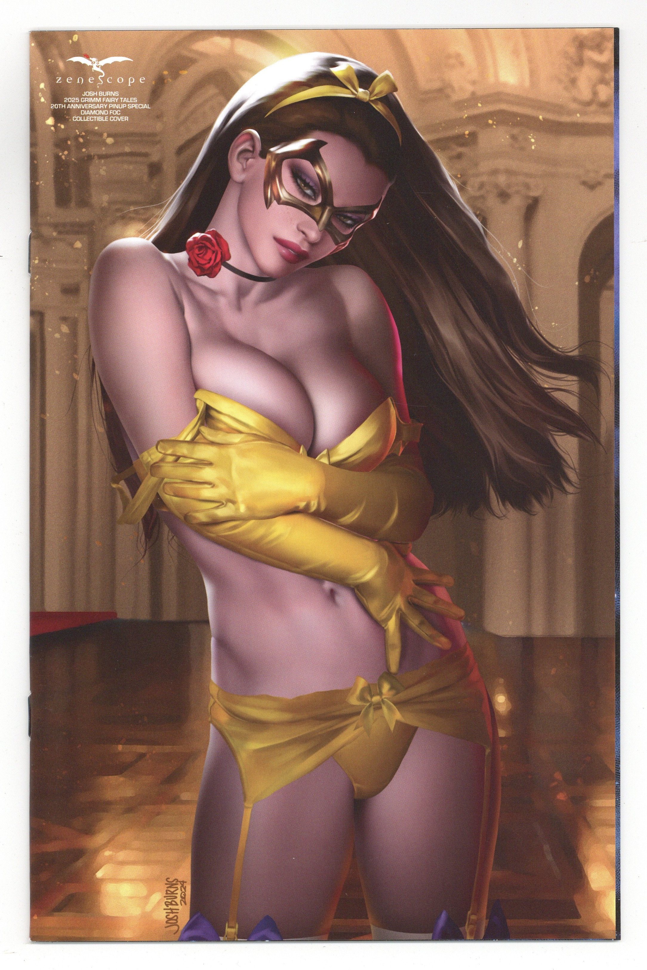 Published Mar 2025 by Zenescope Entertainment.$48.00Limited 1 for 20 Retailer Incentive Variant Cover. Written by Joe Brusha, Dave Franchini. Cover by Josh Burns. Zenescope Entertainment turns 20 years old this year! And to celebrate this milestone anniversary it's releasing a Fairy Tale Pinup Special to honor the last two decades! Showcasing many of the heroines and villainesses of the Grimm Universe, be sure not to miss this stunning collection of characters all donning sexy costumes of the well known fairy tales they are based upon. Filled with marvelous pieces of artwork by some of the industry's top artists contributing gorgeous pin-ups, it also includes a never before published short story! 40 pages, full color. Rated T Cover price $10.00.