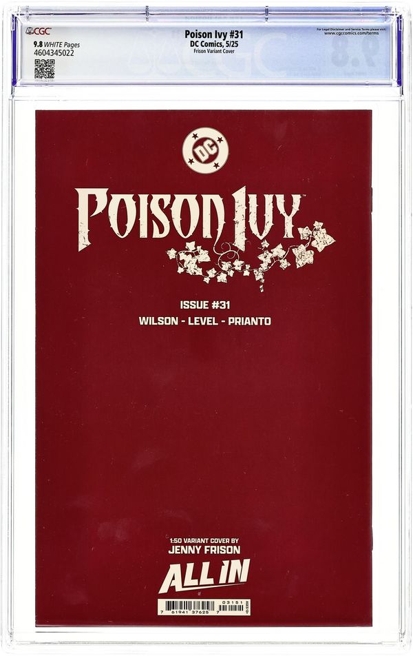 Limited 1 for 50 Retailer Incentive Variant Cover. Written by G. Willow Wilson. Art by Brian Level. Cover by Jenny Frison. THE SHADOW OVER MARSHVIEW! The strange and startling secrets of Marshview are revealed as Poison Ivy, Janet, and Peter Undine explore the transient and hungry ghost town's past. But some things are best left dead and forgotten...lest they try to eat you alive. 32 pages, full color. Rated T+ Cover price $4.99.