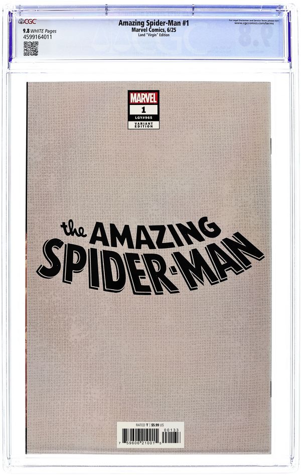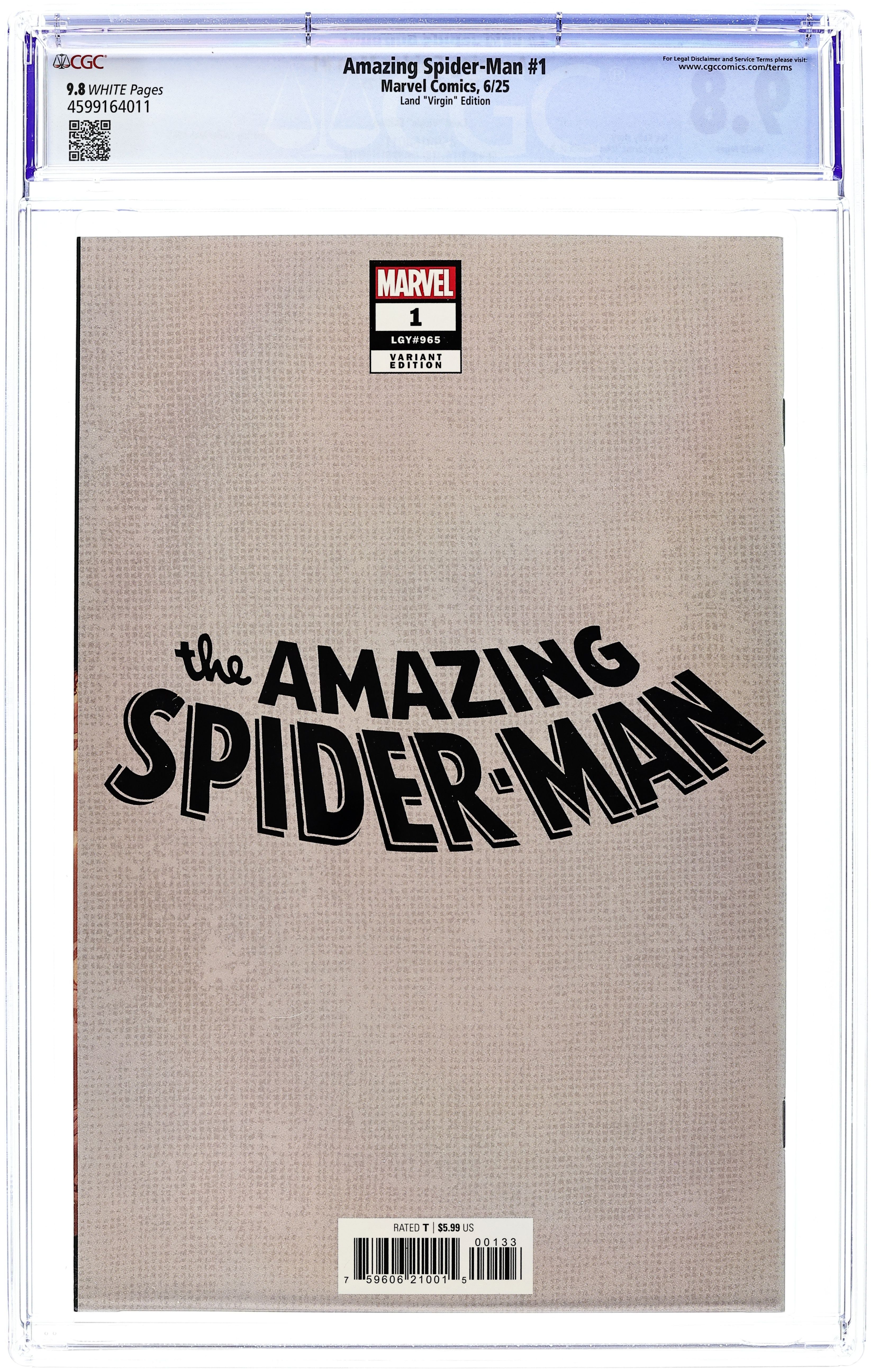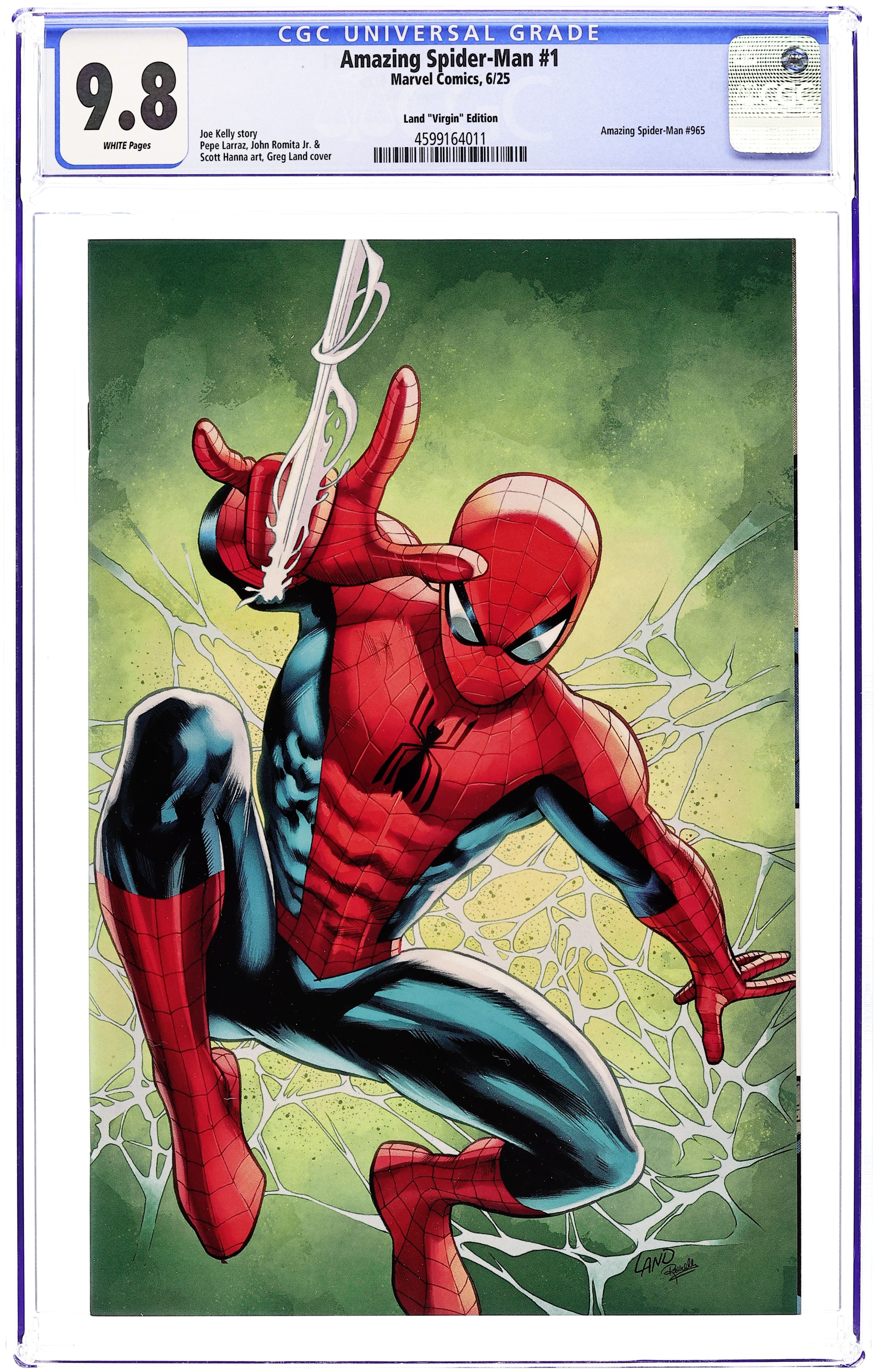 Limited 1 for 100 Retailer Incentive Variant Cover. Written by Joe Kelly. Art by Pepe Larraz; John Romita Jr. Cover by Greg Land. ALIVE & THWIPPING! The next era of AMAZING SPIDER-MAN has arrived! Peter is, shockingly, without a job and looking for gainful employment, but his job search isinterrupted by a RAMPAGING RHINO who is but the tip of a sinister iceberg. What major Spider-Villain is working behind the scenes weaponizing other Spider-Villains including one we havent seen in OVER SEVEN YEARS?! Also, what is that Goblin-free Norman Osborn up to anyway? 40 pages, full color. Rated T Cover price $5.99.