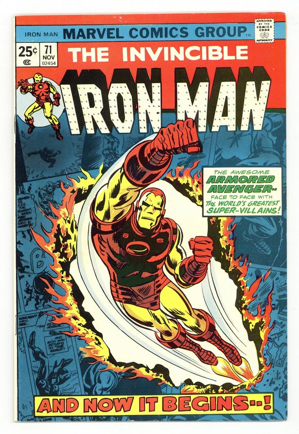 Tags: Marvel Legacy Numbering: Iron Man (part 71), Iron Man$17.50"Battle: Truth and Yellow Claw!" Story by Mike Friedrich. Art by George Tuska and Mike Esposito. After defeating the Mandarin in the previous issue, the Yellow Claw sets his sights on Iron Man. Shell-head battles the Yellow Claw from cover to cover and also has a brief encounter with the Black Lama. After the Yellow Claw narrowly escapes, Iron Man concludes his Southeast Asia adventure and returns to the U.S. (Notes: The letters page includes a letter from comics editor Ralph Macchio. The letters page also contains Marvel Value Stamp series A #26 Mephisto.) 32 pages Cover price $0.25.