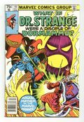 $19.25Newsstand Edition. Story by Peter Gillis. Art by Tom Sutton and Bruce Patterson. Cover by Gene Colan and Pablo Marcus. "What If Dr. Strange Had Been a Disciple of Dormammu?" Uatu the Watcher reminds the reader that events can always take a different path: that a distinction as apparently obvious as good and evil may be very slight indeed; Doctor Strange, as established in the main universe, was an arrogant surgeon who cared more for his patients' money than their health; When his ability to operate was robbed from him due to injuries in a car accident, he sought out the Ancient One, who refused to hand him the easy cure he was hoping for; Instead, he let Strange stay at the retreat and witness Baron Mordo's treachery, thus realizing that greater forces were in the world than his own selfish ambitions, and setting his foot on the path that would lead him to becoming Master of the Mystic Arts. "Spider-Man Meets June Jitsui!" ad for Hostess snack cakes. 52 pgs. Cover price $0.75.